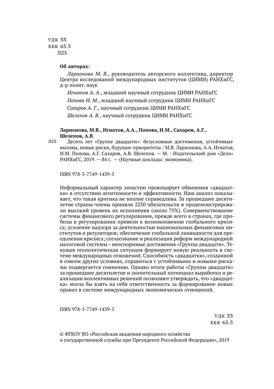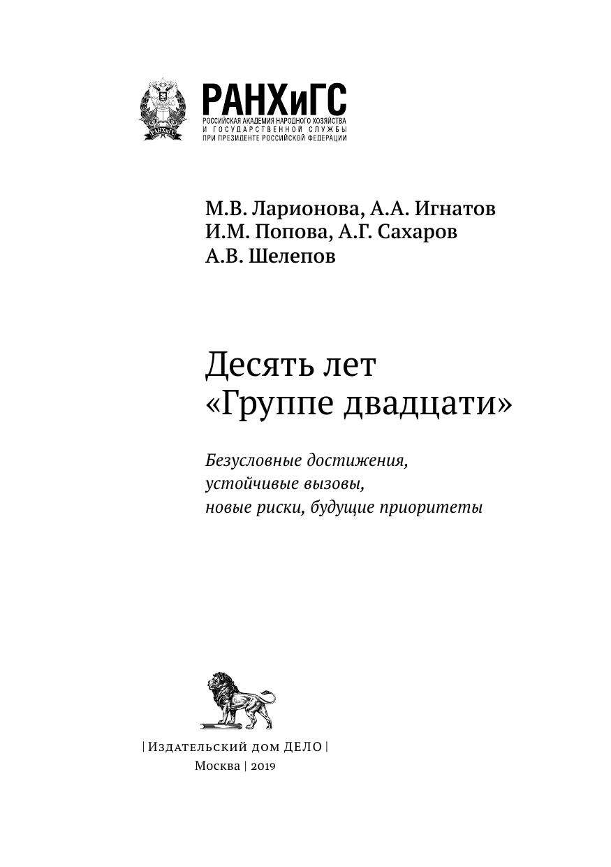 Десять лет «Группе двадцати»: безусловные достижения, устойчивые вызовы, новые риски, будущие приоритеты