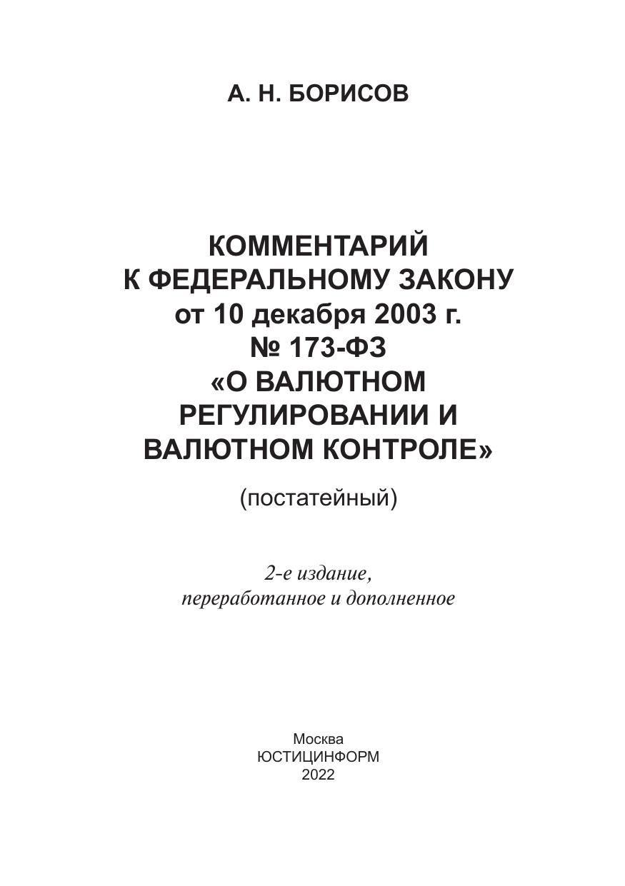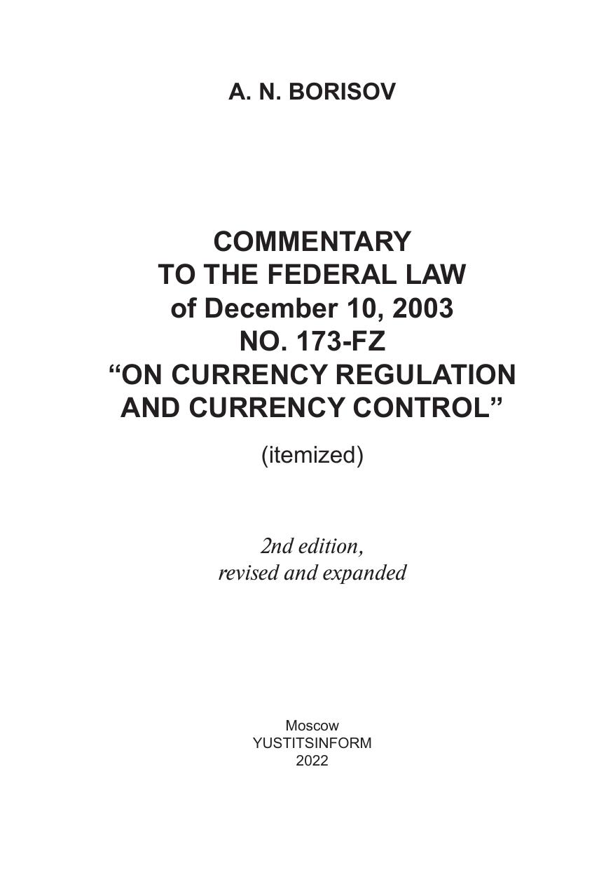 Комментарий к Федеральному закону от 10 декабря 2003 г. № 173-ФЗ «О валютном регулировании и валютном контроле» (постатейный)