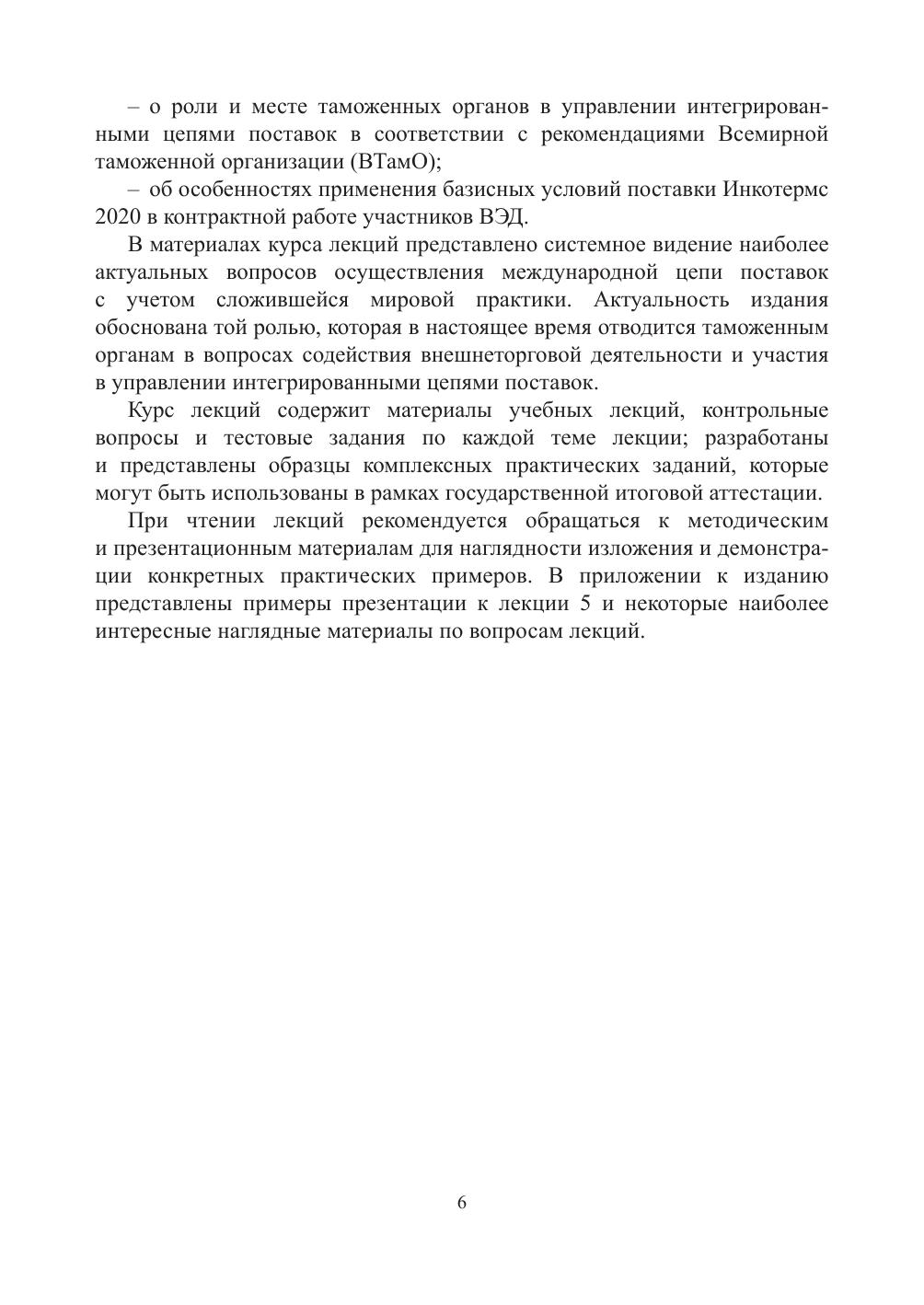 Курс лекций «Международная цепь поставок» посвящен вопросам осуществления международной цепи поставок в современных условиях внешней торговли и роли таможенных органов в этом процессе, а также актуальным вопросам применения базисных условий поставки Инкотермс в редакции 2020 г., интернета вещей, технологии блокчейн в международной цепи поставок.