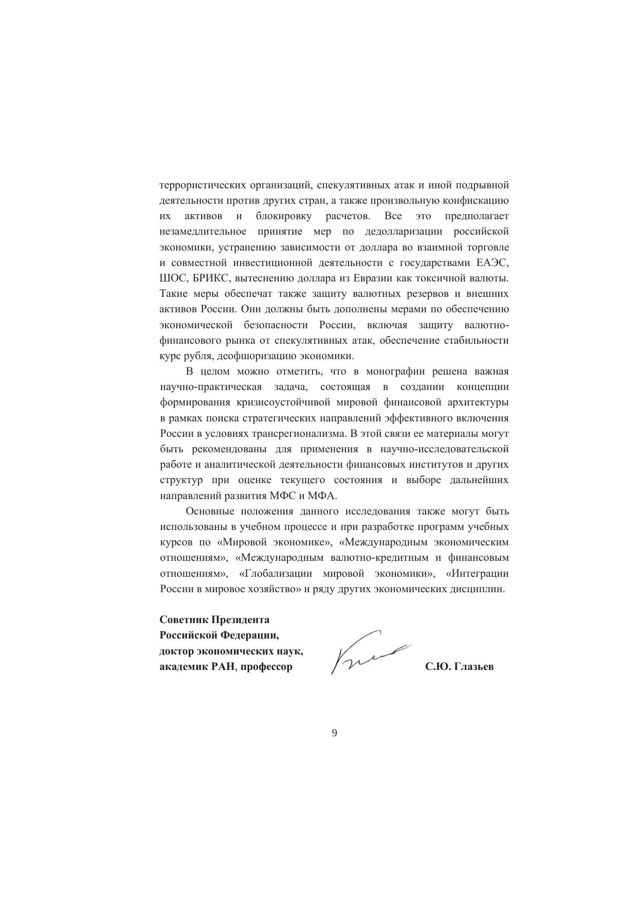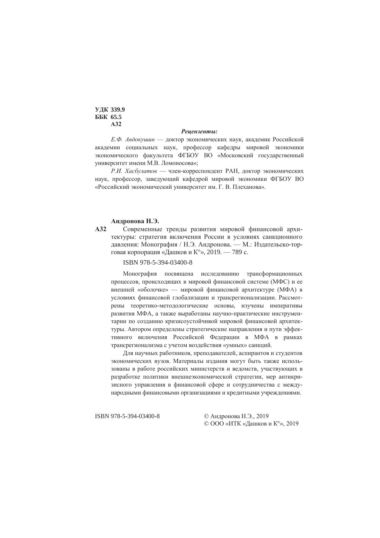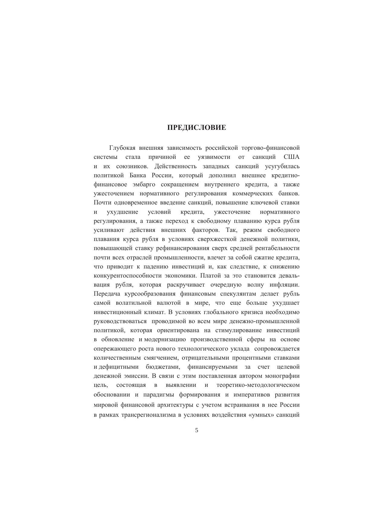 Монография посвящена исследованию трансформационных процессов, происходящих в мировой финансовой системе (МФС) и ее внешней «оболочке» — мировой финансовой архитектуре (МФА) в условиях финансовой глобализации и трансрегионализации. Рассмотрены теоретико-методологические основы, изучены императивы развития МФА, а также выработаны научно-практические инструментарии по созданию кризисоустойчивой мировой финансовой архитектуры. Автором определены стратегические направления и пути эффективного включения Российской Федерации в МФА в рамках трансрегионализма с учетом воздействия «умных» санкций. Для научных работников, преподавателей, аспирантов и студентов экономических вузов. Материалы издания могут быть также использованы в работе российских министерств и ведомств, участвующих в разработке политики внешнеэкономической стратегии, мер антикризисного управления в финансовой сфере и сотрудничества с международными финансовыми организациями и кредитными учреждениями.