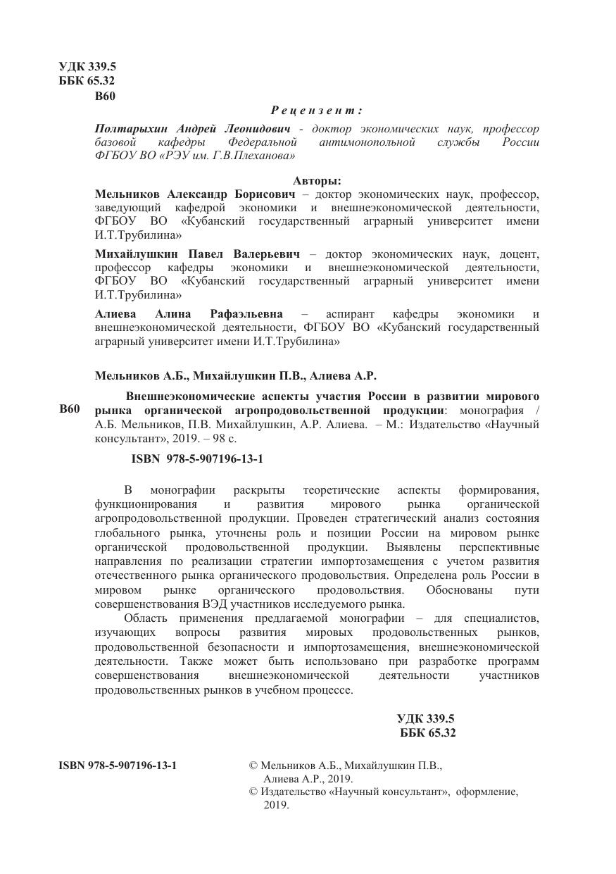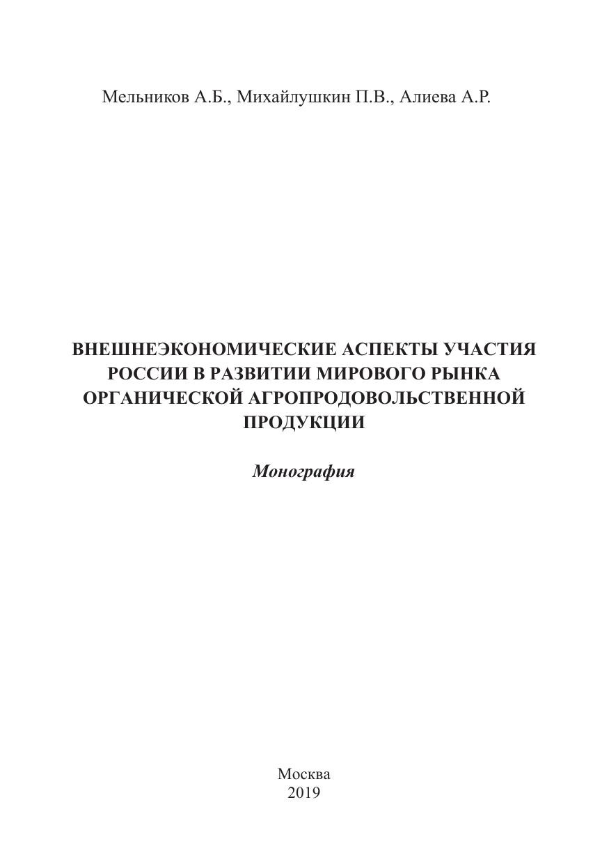 Внешнеэкономические аспекты участия России в развитии мирового рынка органической агропродовольственной продукции