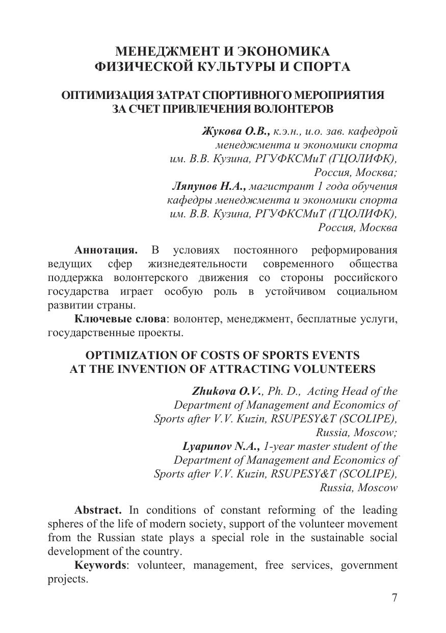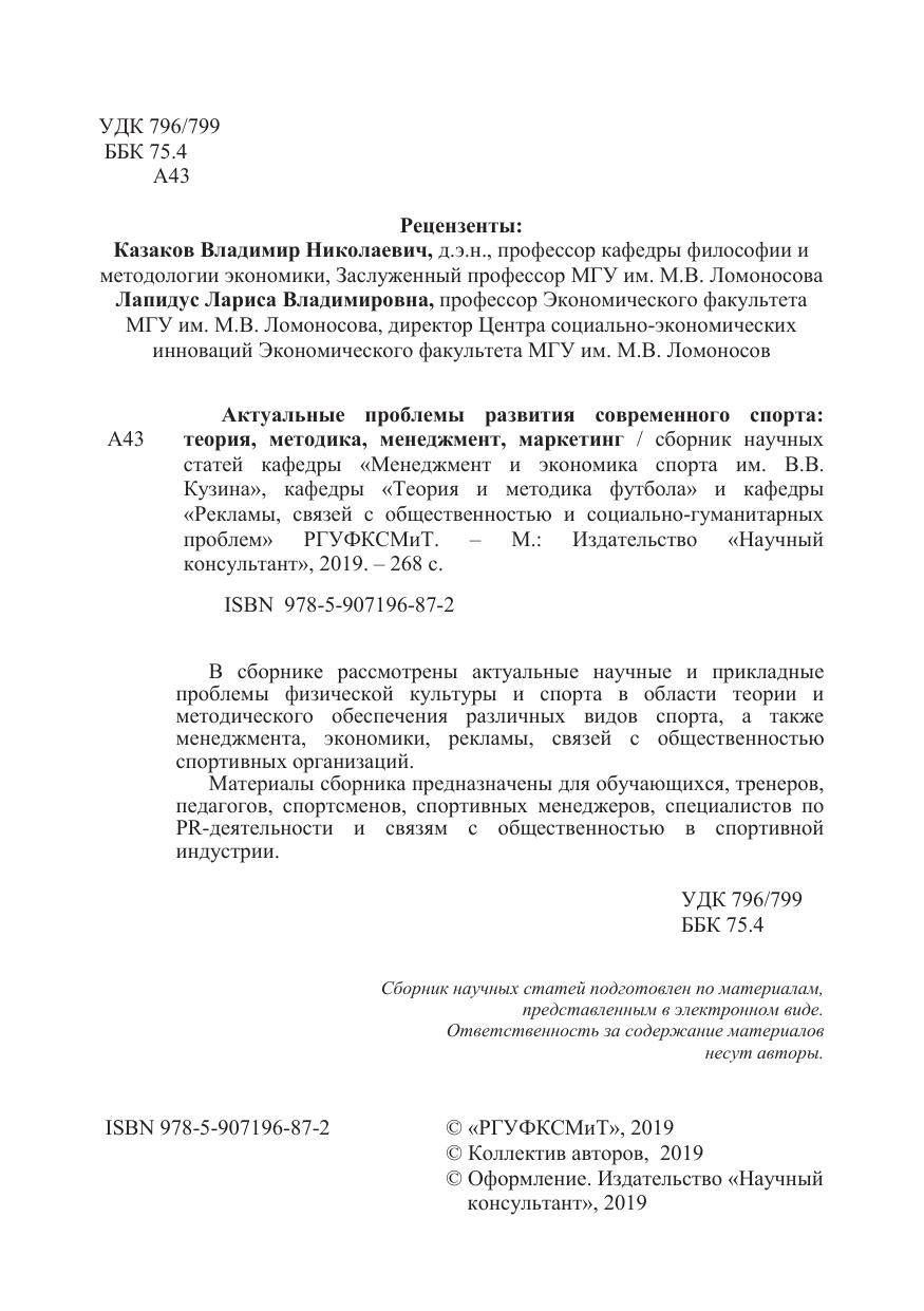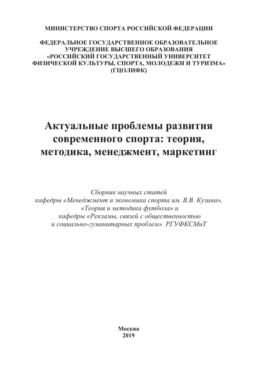 Сборник научных статей кафедры «Менеджмент и экономика спорта им. В.В. Кузина», «Теория и методика футбола» и кафедры «Рекламы, связей с общественностью и социально-гуманитарных проблем» РГУФКСМиТ.