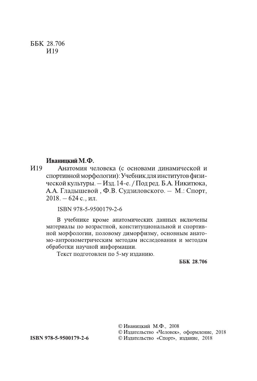 В учебнике кроме анатомических данных включены материалы по возрастной, конституциональной и спортивной морфологии, половому диморфизму, основным анатомо-антропометрическим методам исследования и методам обработки научной информации. Текст подготовлен по 5-му изданию.