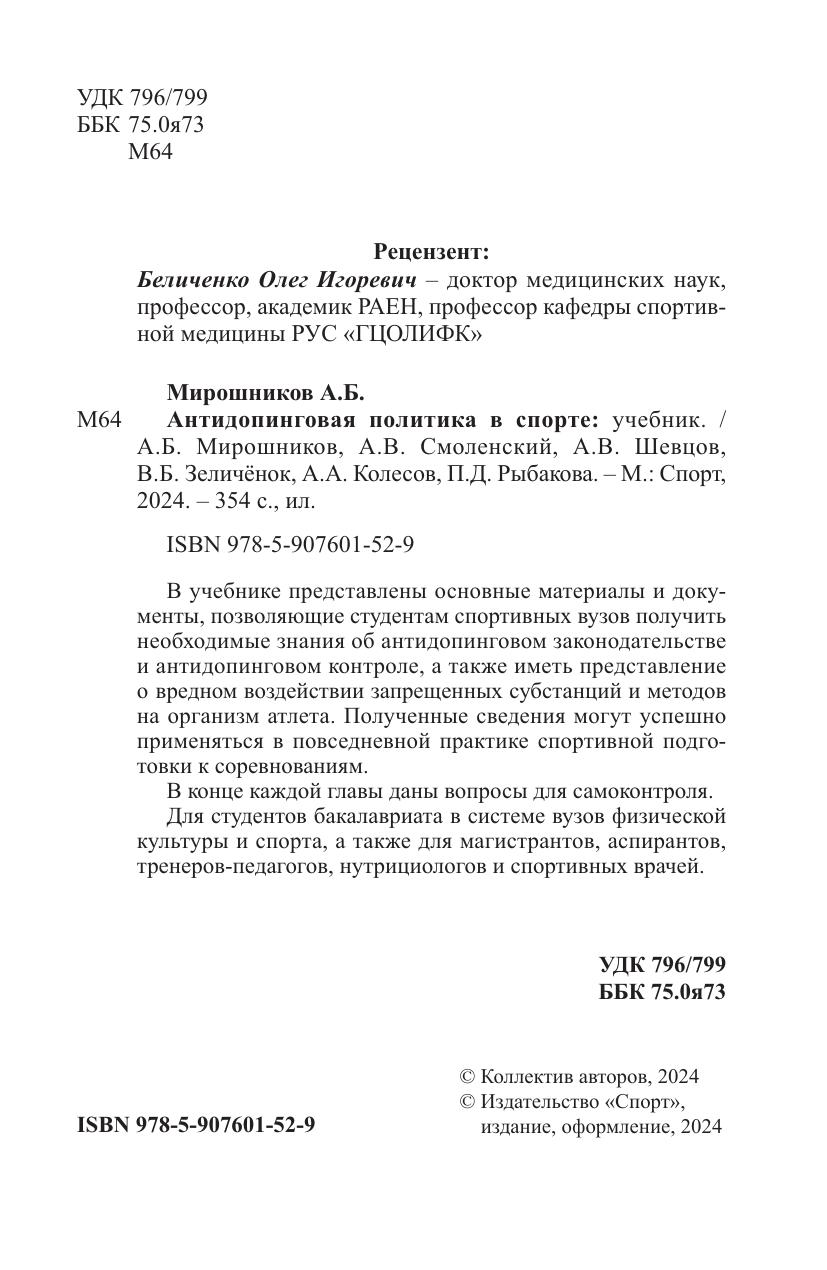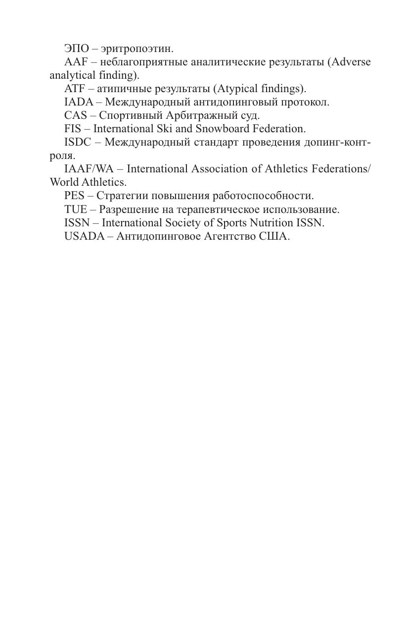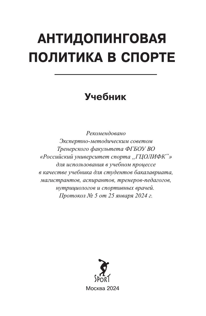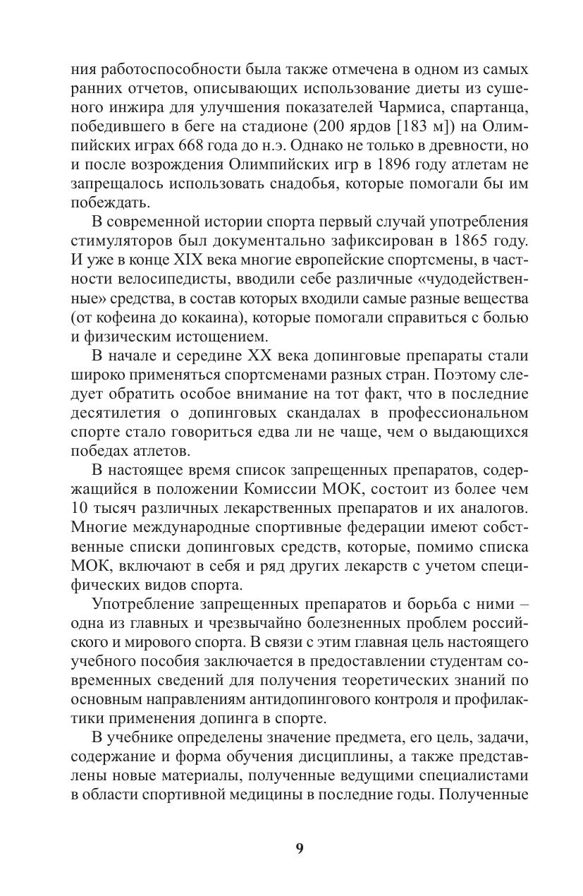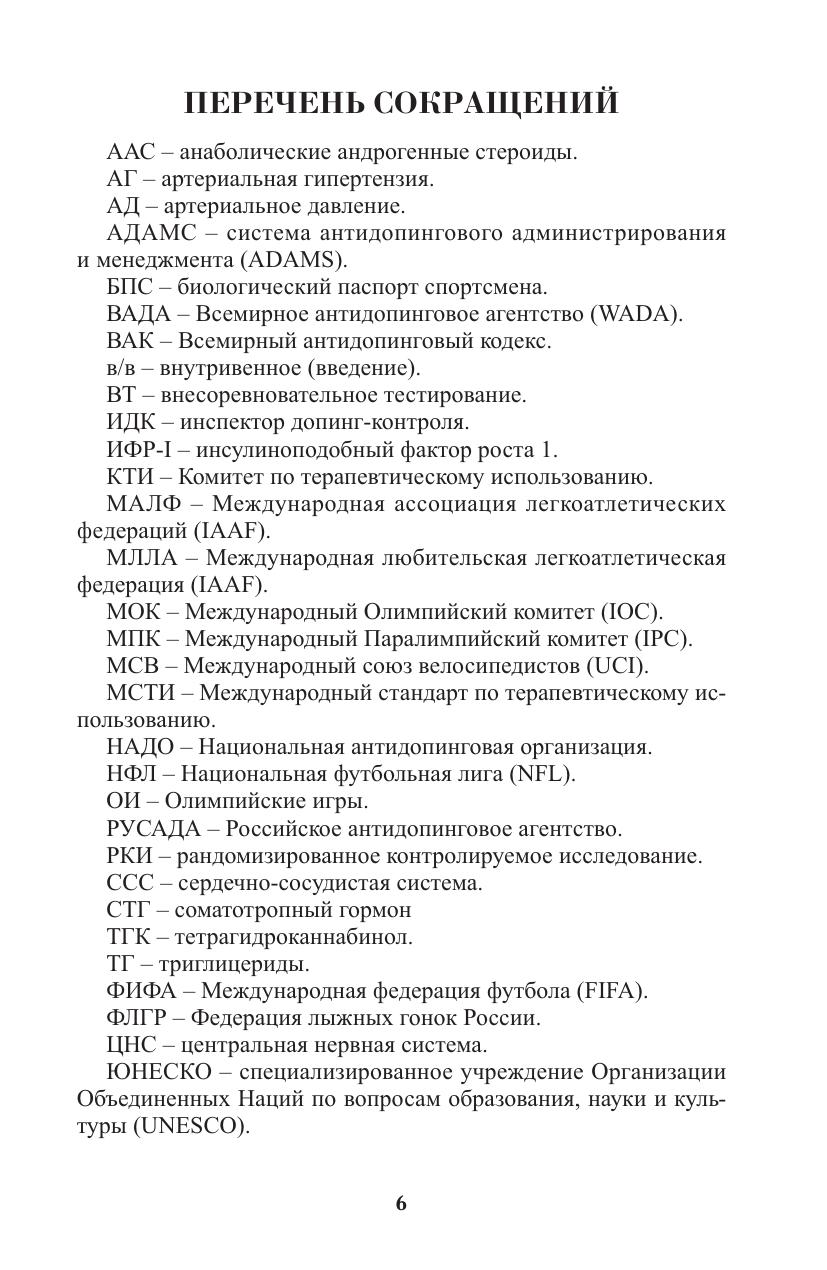 В учебнике представлены основные материалы и документы, позволяющие студентам спортивных вузов получить необходимые знания об антидопинговом законодательстве и антидопинговом контроле, а также иметь представление о вредном воздействии запрещенных субстанций и методов на организм атлета. Полученные сведения могут успешно применяться в повседневной практике спортивной подготовки к соревнованиям. В конце каждой главы даны вопросы для самоконтроля.
