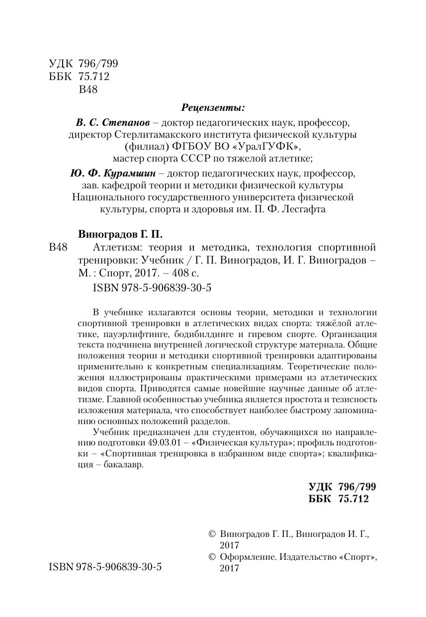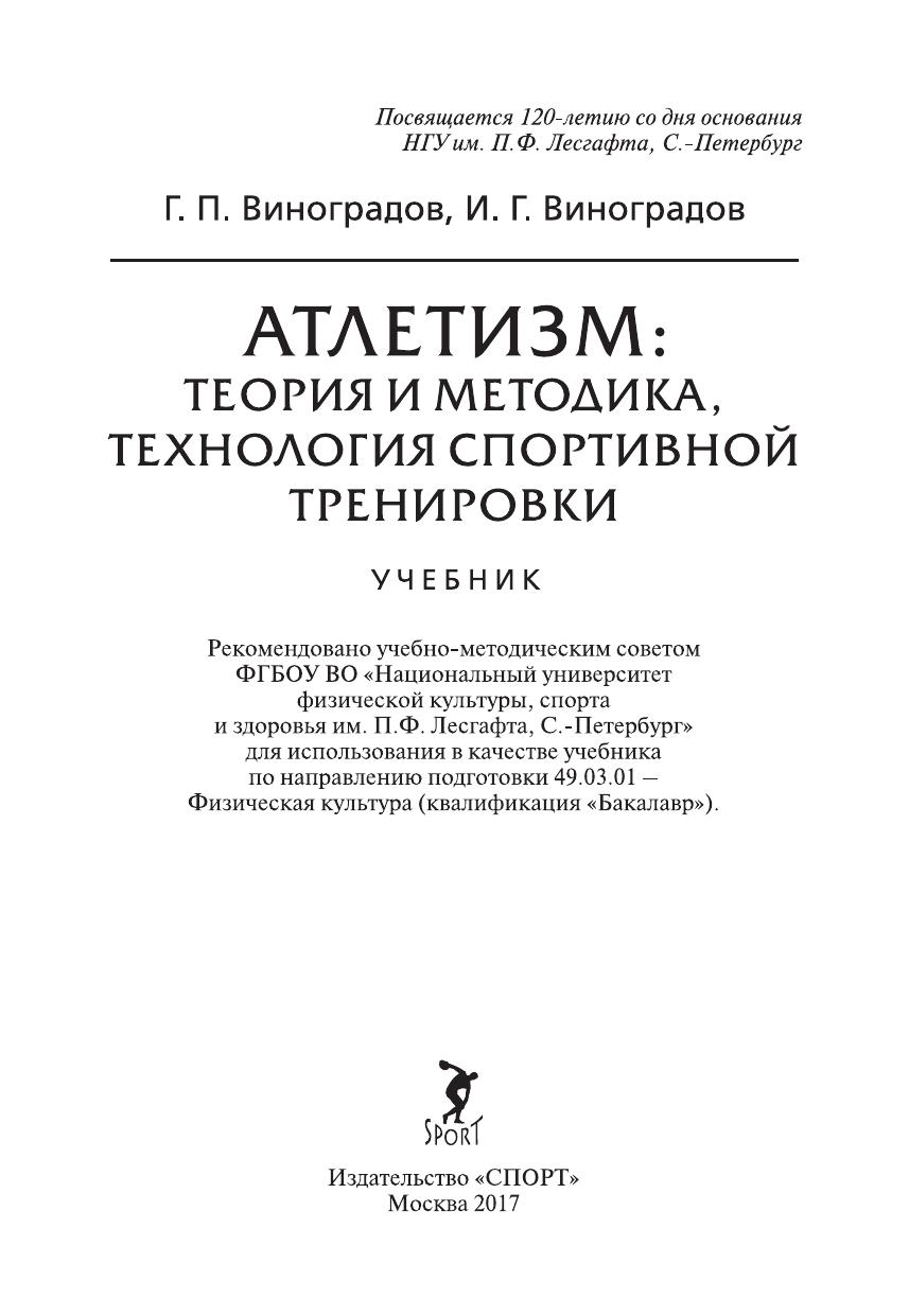 Гриф: Рекомендовано учебно-методическим советом ФГБОУ ВО «Национальный университет физической культуры, спорта и здоровья им. П.Ф. Лесгафта, С.-Петербург» для использования в качестве учебника по направлению подготовки 49.03.01 — Физическая культура (квалификация «Бакалавр»)