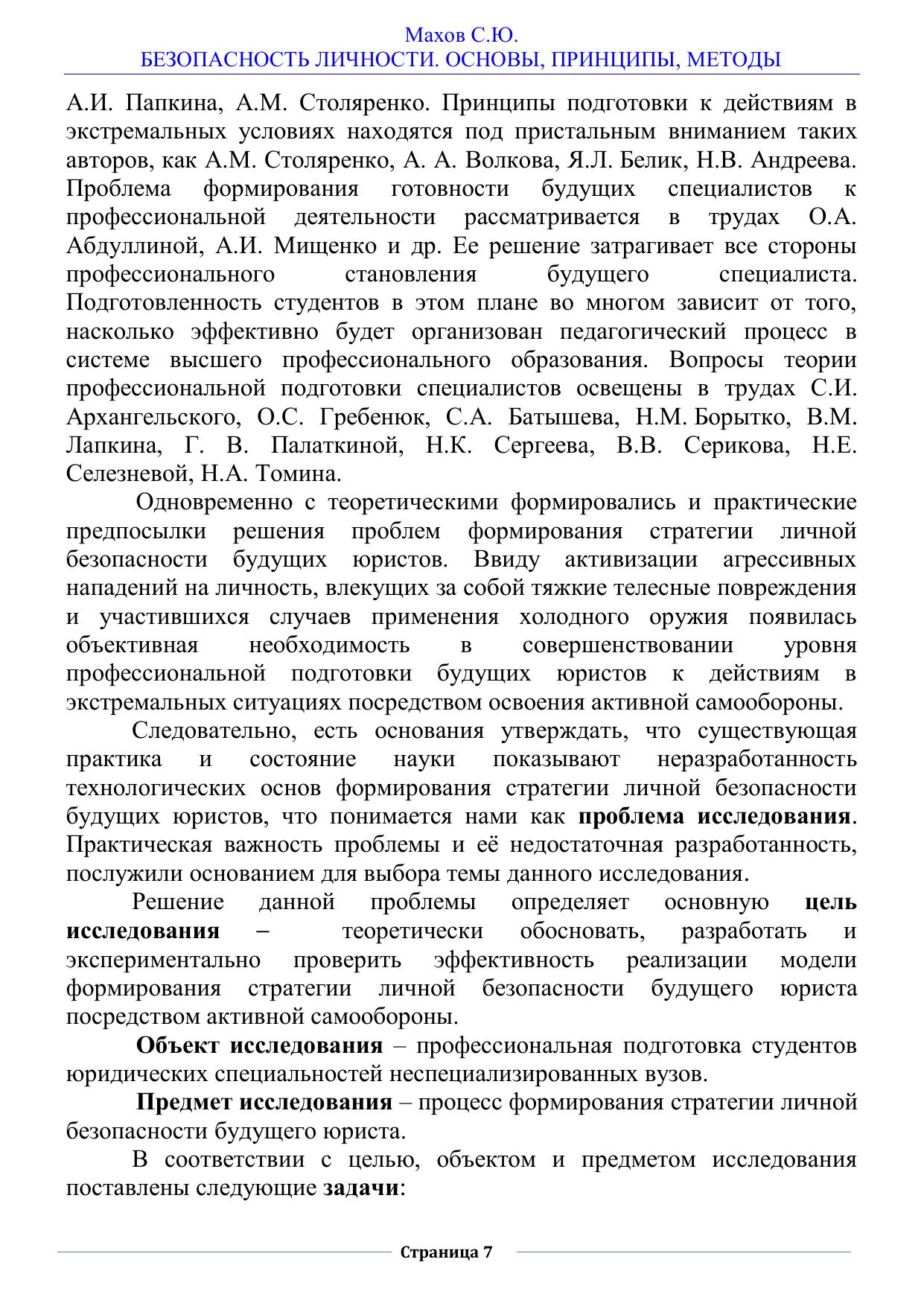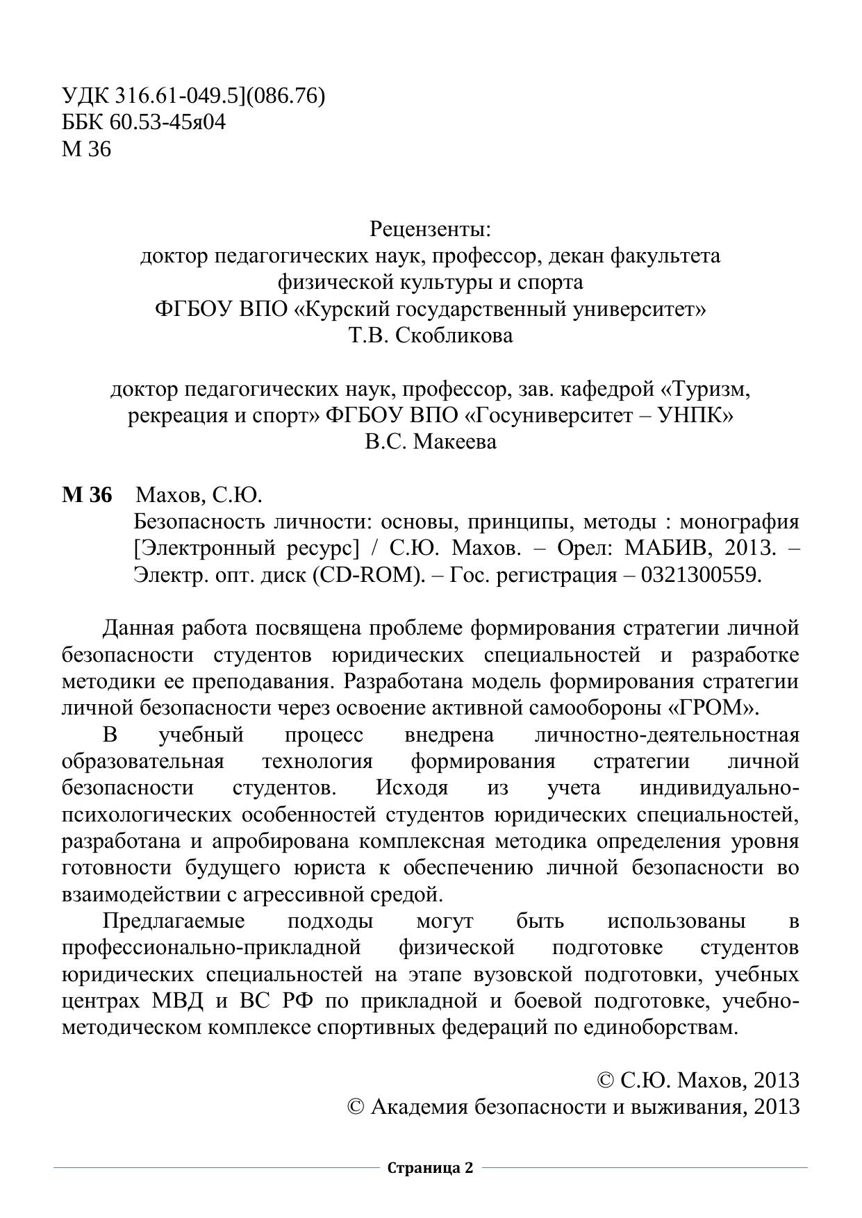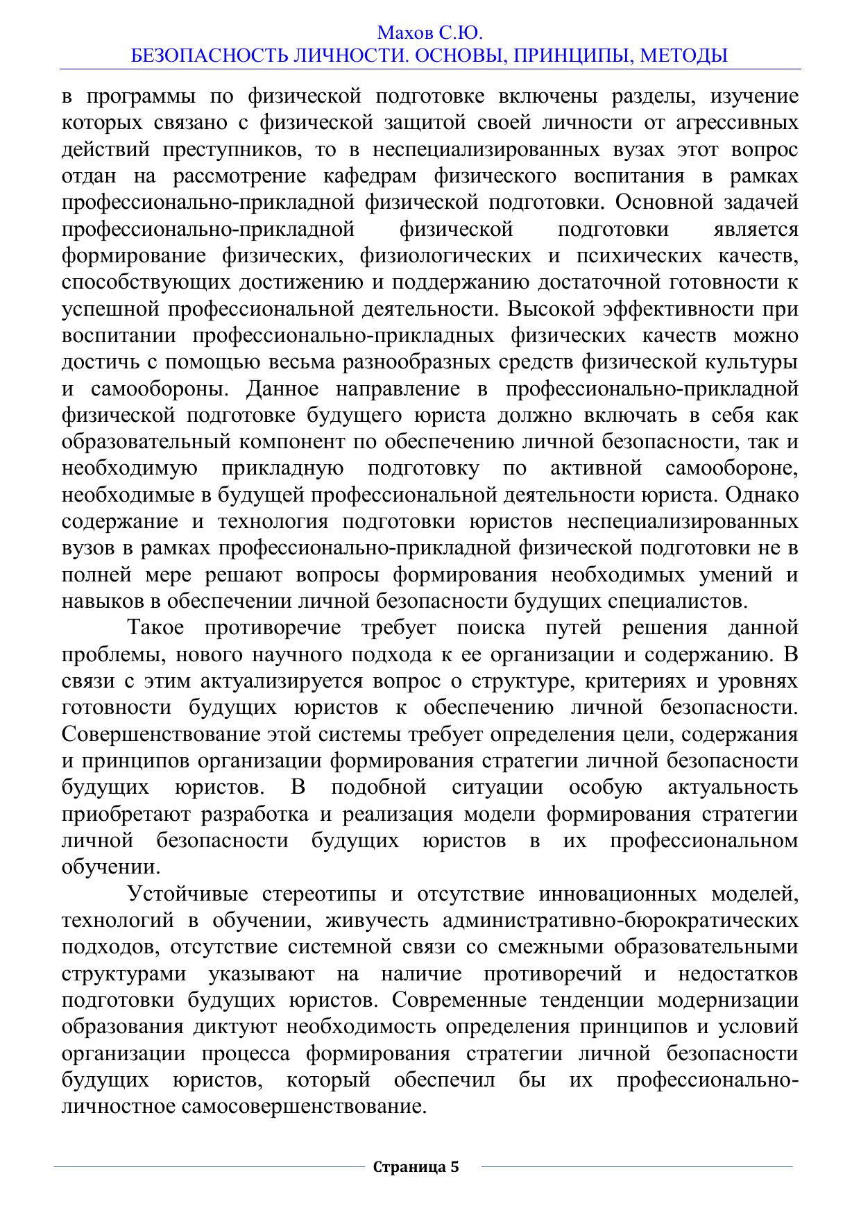 Данная работа посвящена проблеме формирования стратегии личной безопасности студентов юридических специальностей и разработке методики ее преподавания. Разработана модель формирования стратегии личной безопасности через освоение активной самообороны «ГРОМ».
