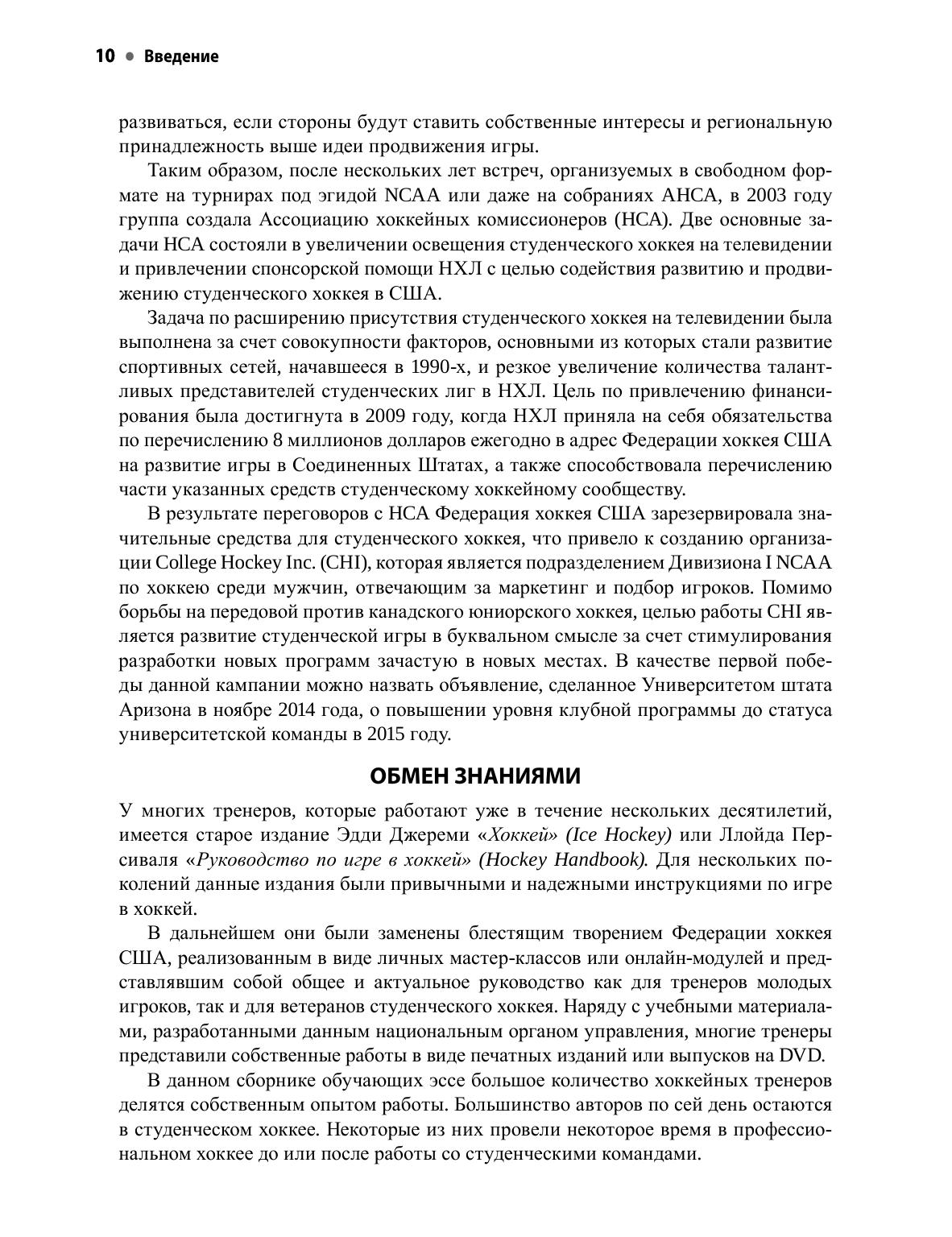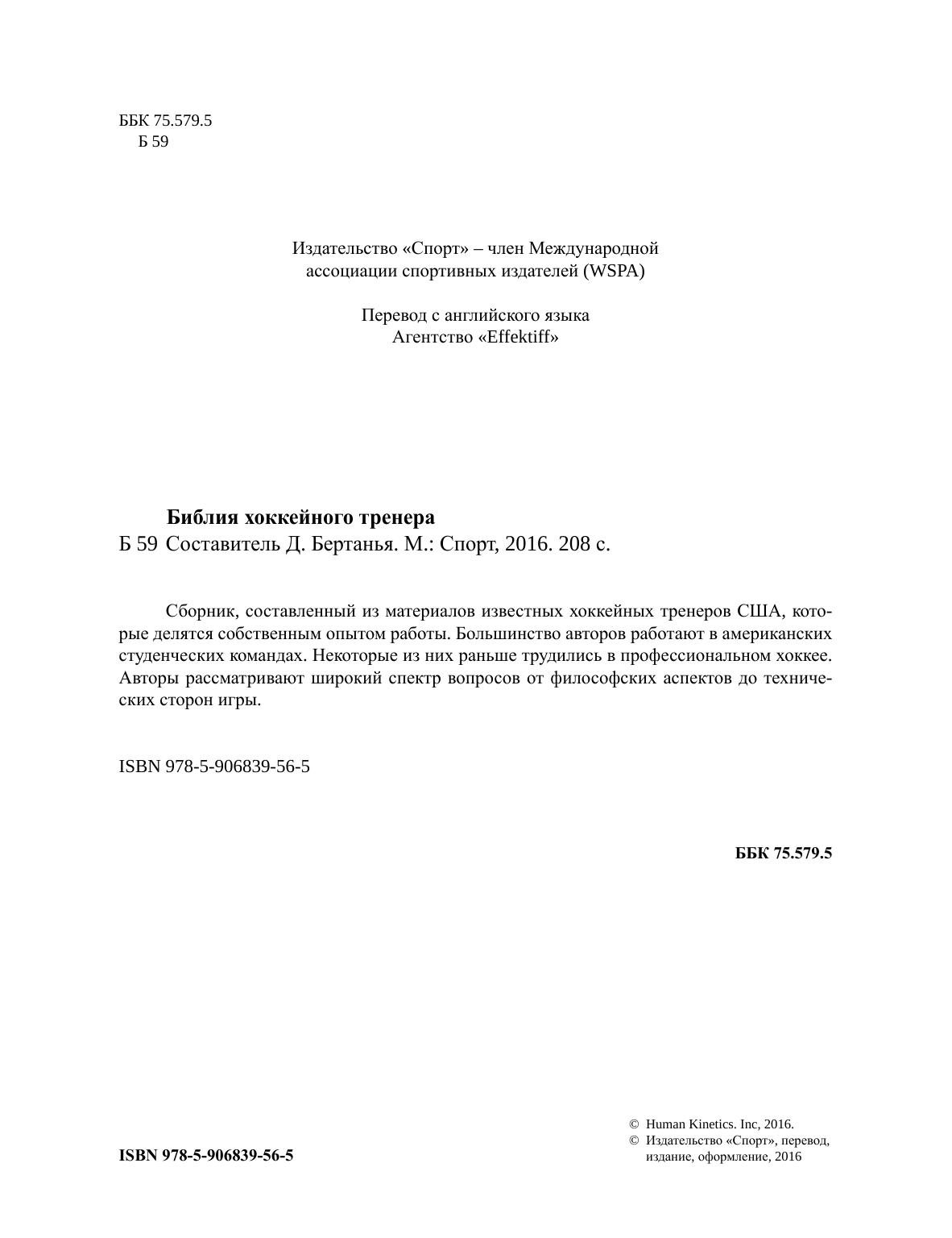 Сборник, составленный из материалов известных хоккейных тренеров США, которые делятся собственным опытом работы. Большинство авторов работают в американских студенческих командах. Некоторые из них раньше трудились в профессиональном хоккее. Авторы рассматривают широкий спектр вопросов от философских аспектов до технических сторон игры.
