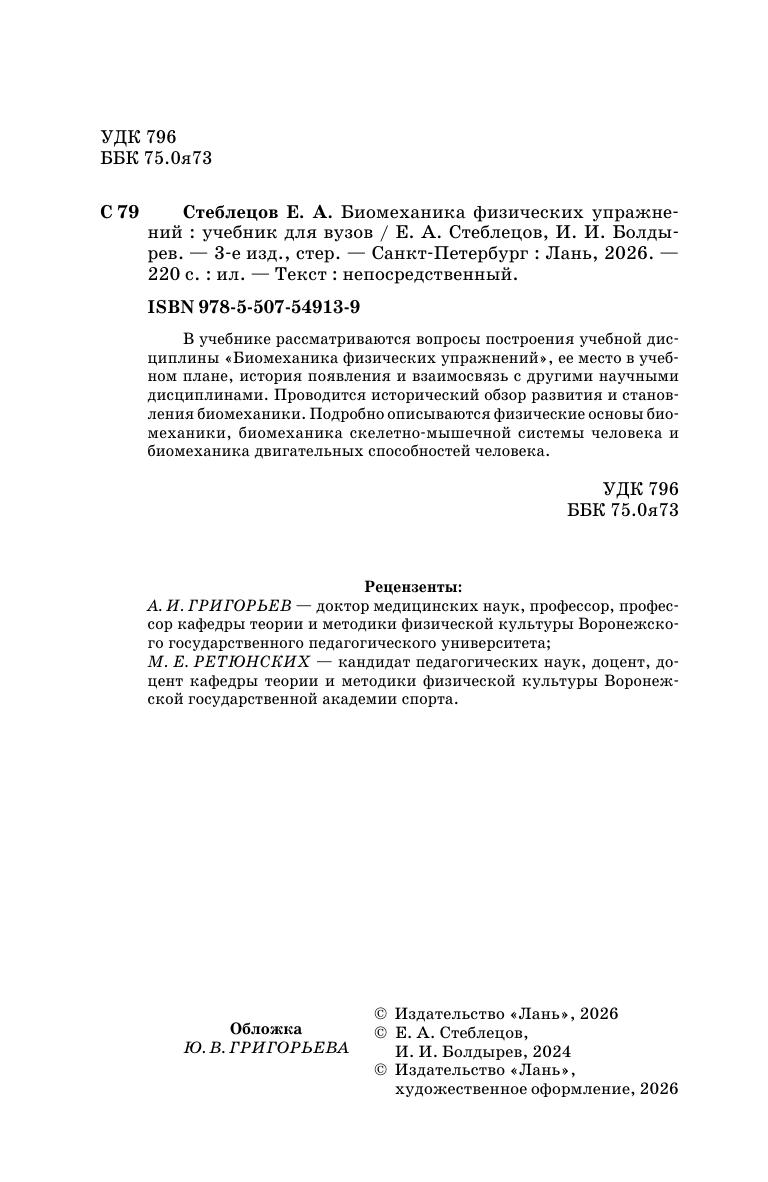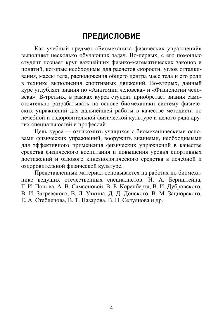 В учебнике рассматриваются вопросы построения учебной дисциплины «Биомеханика физических упражнений», ее место в учебном плане, истории появления и взаимосвязь с другими научными дисциплинами. Проводится исторический обзор развития и становления биомеханики. Подробно описываются физические основы биомеханики, биомеханика скелетно-мышечной системы человека и биомеханика двигательных способностей человека.