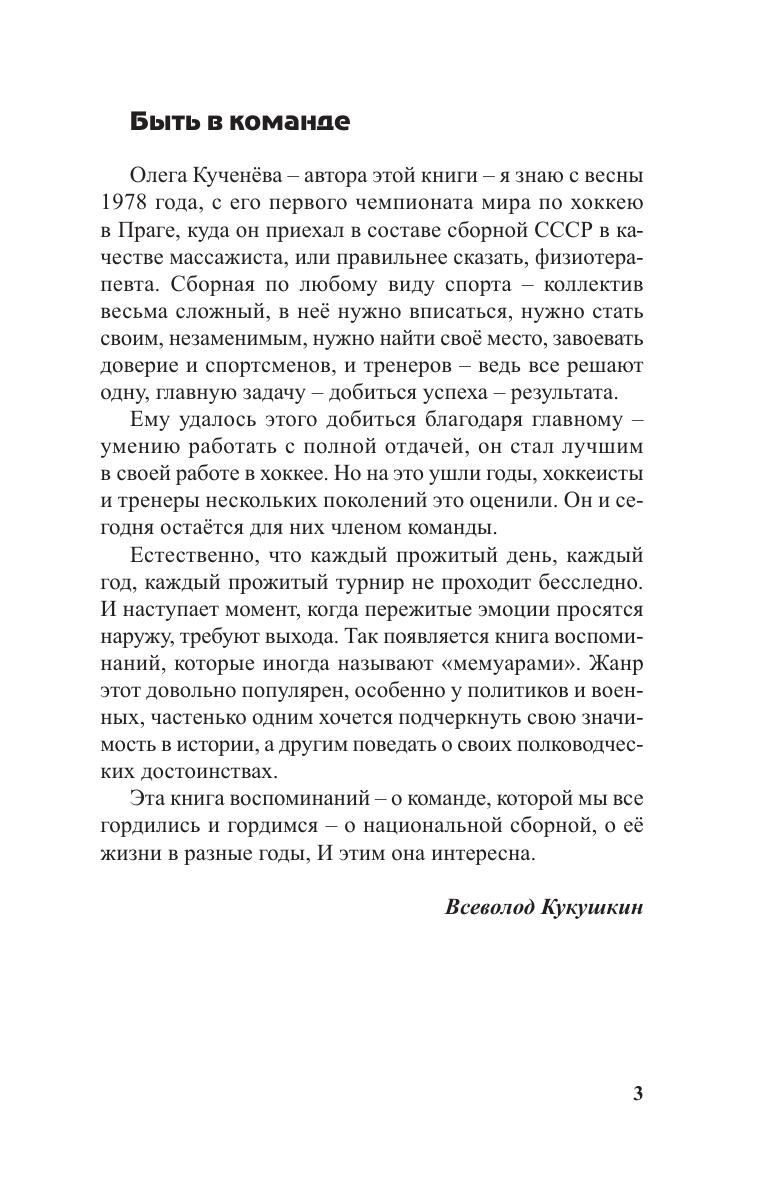 В своей книге известный хоккейный специалист О.В. Кученёв рассказывает об Олимпиадах, чемионатах мира, на которых ему довелось работать, но, главное, о людях хоккея, с кем выпало встречаться.