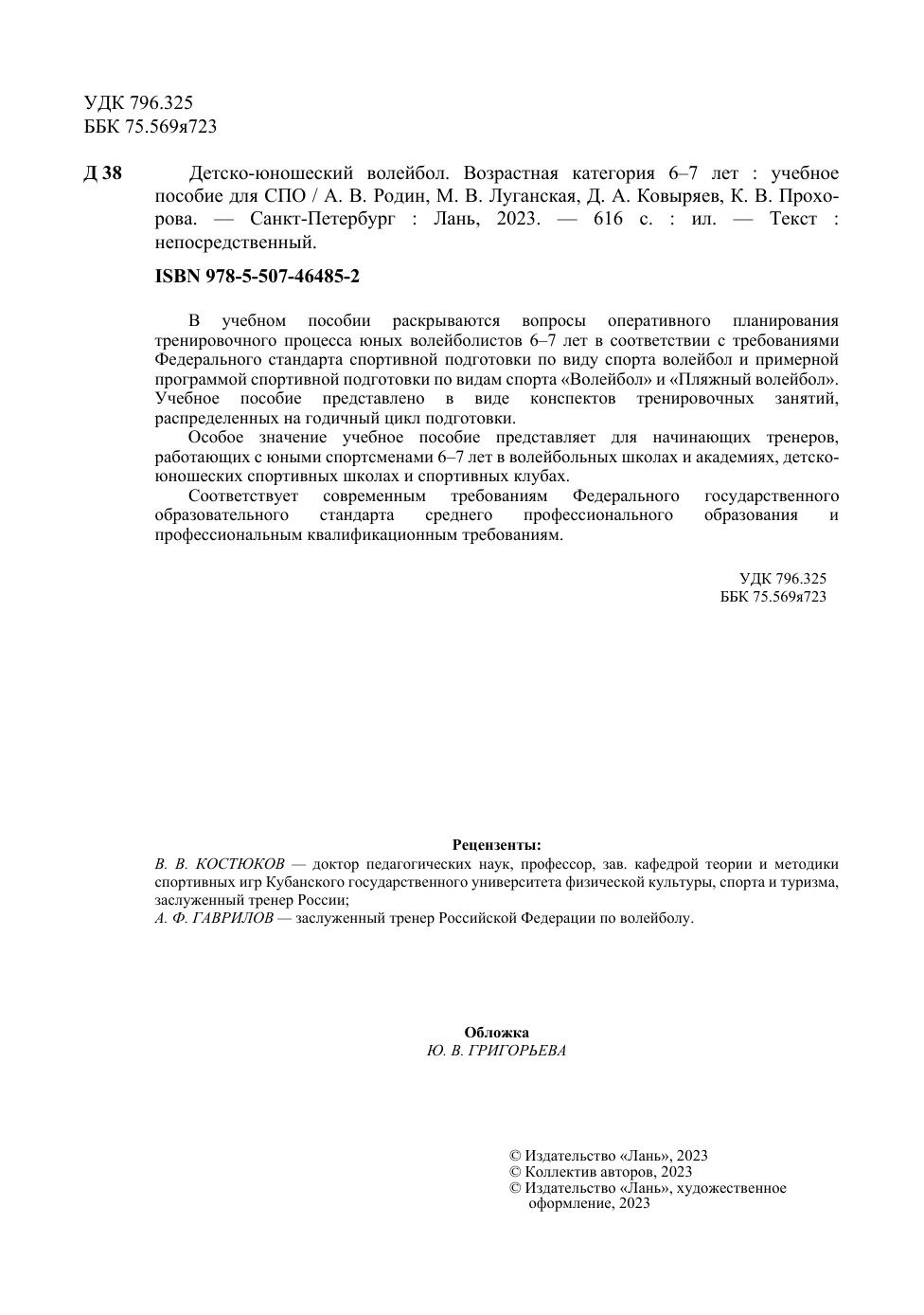 В учебном пособии раскрываются вопросы оперативного планирования тренировочного процесса юных волейболистов 6–7 лет в соответствие с требованиями Федерального стандарта спортивной подготовки по виду спорта волейбол и примерной программой спортивной подготовки по виду спорта «Волейбол» и «Пляжный волейбол». Учебное пособие представлено в виде конспектов тренировочных занятий, распределенных на годичный цикл подготовки. Особое значение учебное пособие представляет для начинающих тренеров, работающих с юными спортсменами 6–7 лет в волейбольных школах и академиях, детско-юношеских спортивных школах и спортивных клубах. Соответствует современным требованиям Федерального государственного образовательного стандарта среднего профессионального образования и профессиональным квалификационным требованиям.