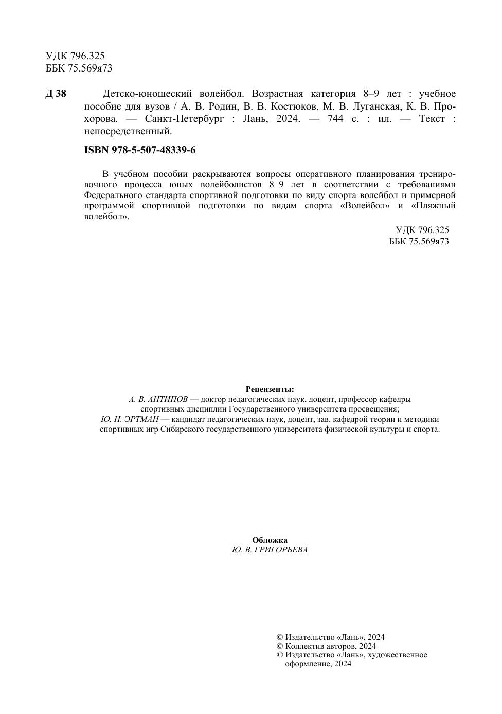 В учебном пособии раскрываются вопросы оперативного планирования тренировочного процесса юных волейболистов 8–9 лет в соответствии с требованиями Федерального стандарта спортивной подготовки по виду спорта волейбол и примерной программой спортивной подготовки по видам спорта «Волейбол» и «Пляжный волейбол».