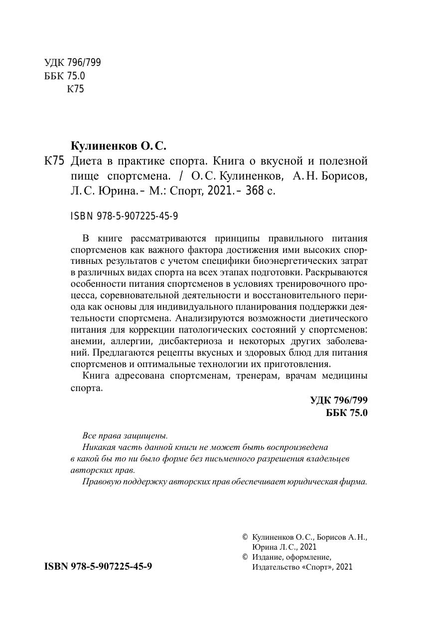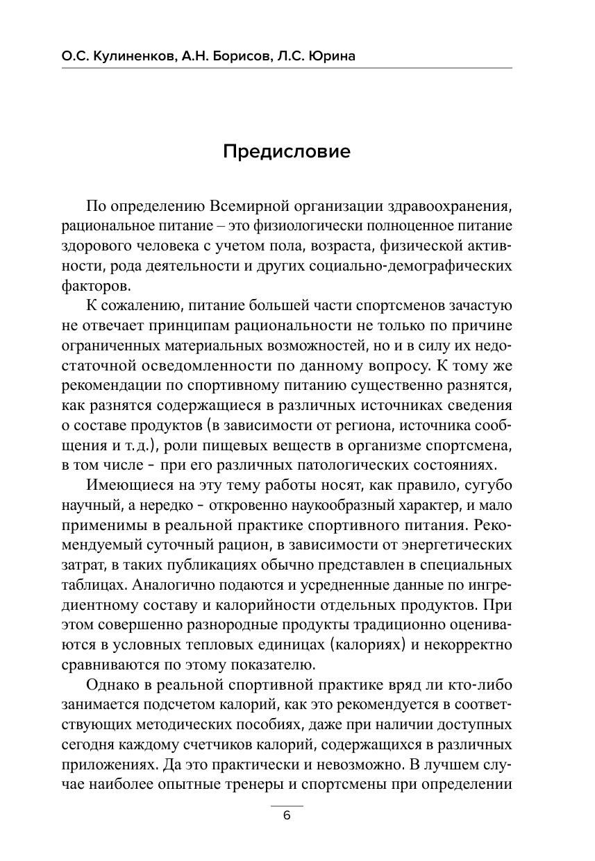 спортсменов и оптимальные технологии их приготовления. Книга адресована спортсменам, тренерам, врачам медицины спорта.