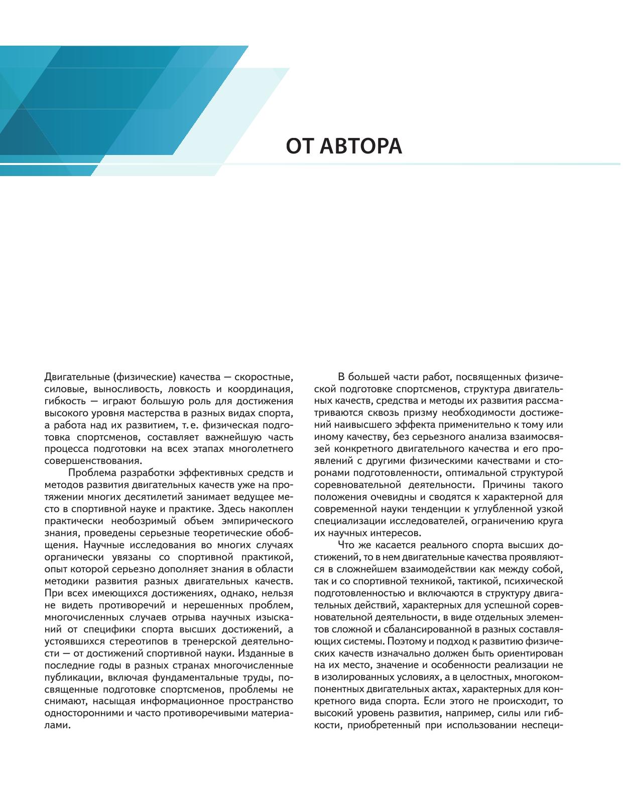 В монографии подвергнута всестороннему анализу проблема развития качеств (скоростных, силовых, выносливости, ловкости и координации, гибкости) и физической подготовки спортсменов. Своим содержанием представленная работа принципиально отличается от большинства обобщающих работ, посвященных двигательными качествам и физической подготовке спортсменов. Структура двигательных качеств и методика их развития рассматриваются не сквозь призму достижения наивысшего тренировочного эффекта применительно к тому или иному качеству, а на основе соответствия уровня развития и особенностей проявления каждого из двигательных качеств эффективности двигательных действий, характерных для конкретного вида спорта, органичной взаимосвязи двигательных качеств между собой и с другими сторонами подготовленности спортсменов - технической, тактической, психологической. Широко представлен материал общенаучного и специального характера, обеспечивающий фундаментальность подхода к структуре двигательных качеств и методике их развития, рациональному питанию, применению средств интенсификации тренировочного процесса, стимуляции работоспособности и восстановительных реакций, профилактике перетренированности и травматизма как важнейшим составляющим высокоэффективной физической подготовки спортсменов. Содержание книги базируется на огромном массиве научного знания, накопленного западной, восточно-европейской и азиатской школами спортивной науки, обобщении достижений передовой спортивной практики, а и также на результатах многолетних исследований автора. Для тренеров и спортсменов, преподавателей и студентов вузов физической культуры и спорта, научных работников, спортивных врачей.