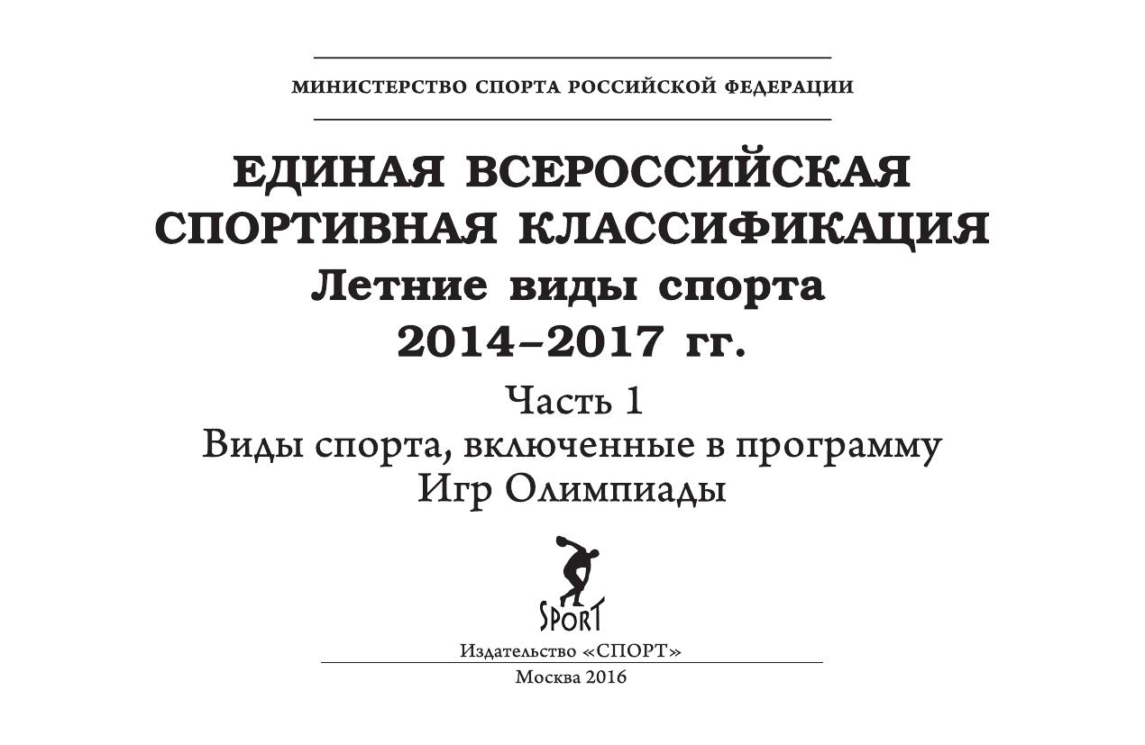 Единая всероссийская спортивная классификация/ Летние виды спорта 2014–2017 гг. Часть 1/ Виды спорта, включенные в программу Игр Олимпиады