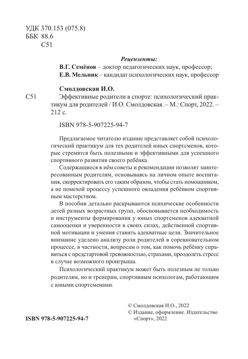 Предлагаемое читателю издание представляет собой психологический практикум для тех родителей юных спортсменов, которые стремятся быть полезными и эффективными для успешного спортивного развития своего ребёнка.