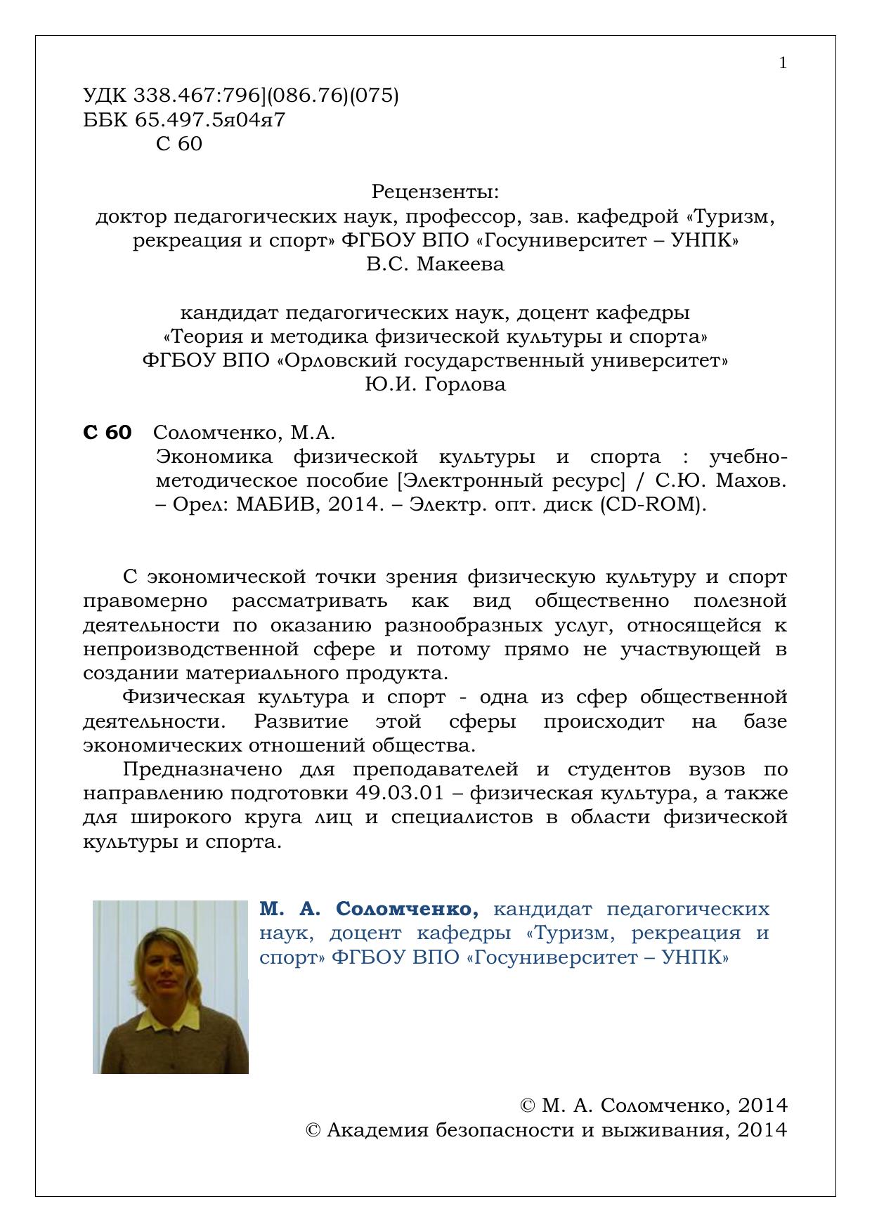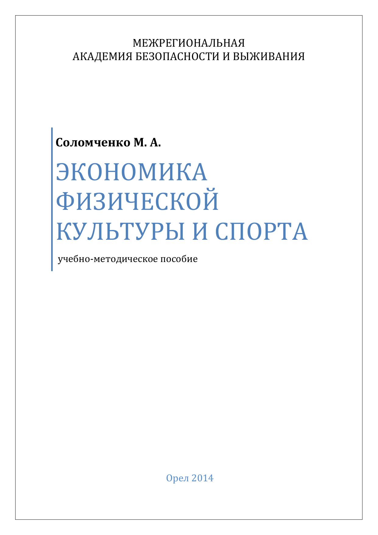 Экономика физической культуры и спорта: учебно-методическое пособие