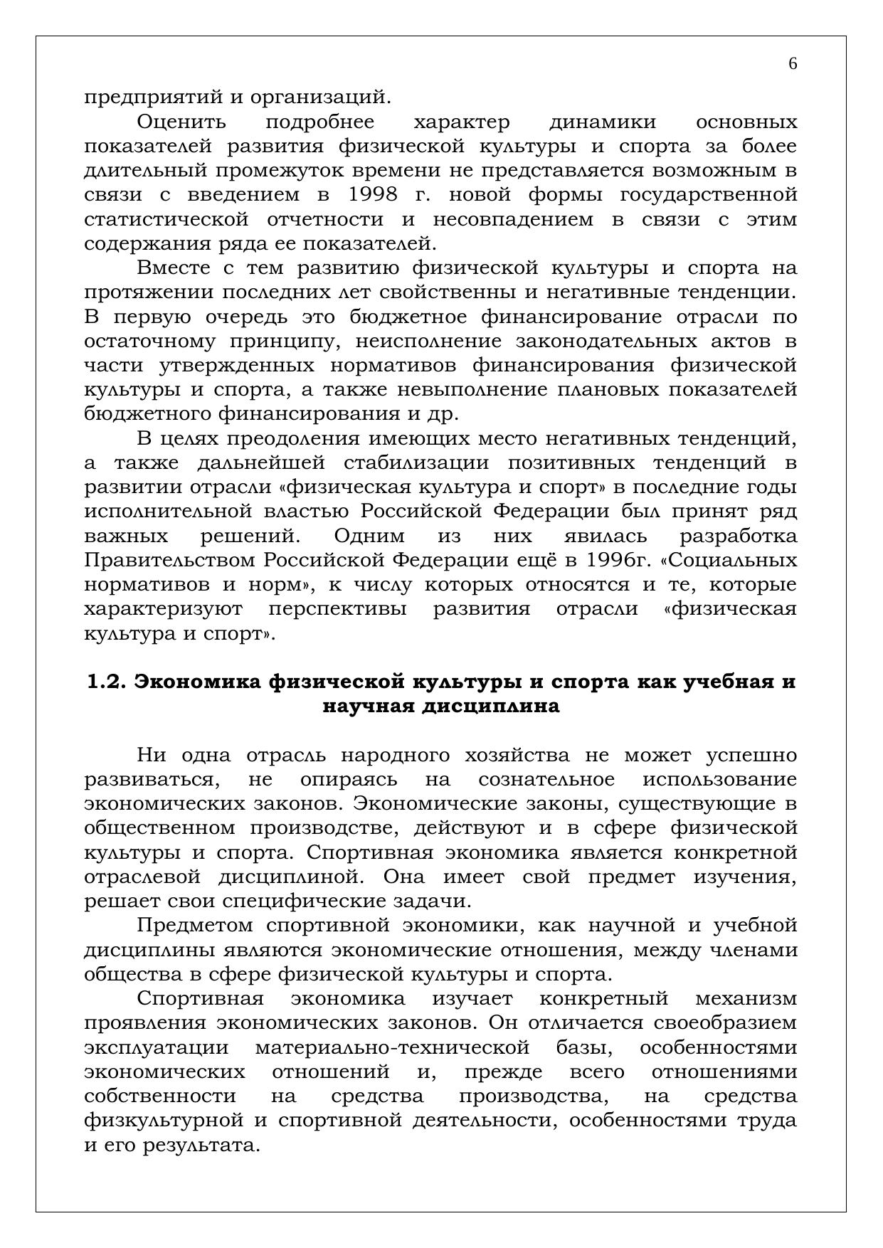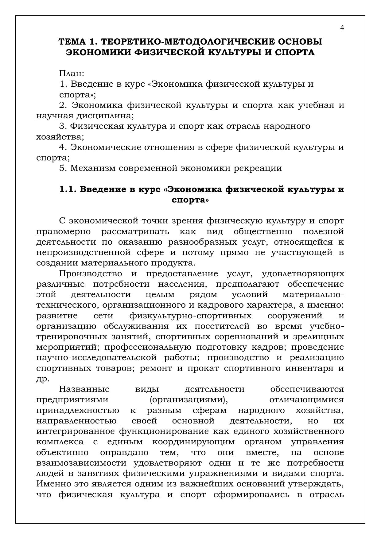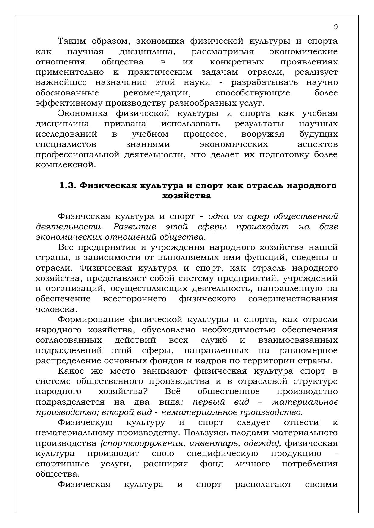 С экономической точки зрения физическую культуру и спорт правомерно рассматривать как вид общественно полезной деятельности по оказанию разнообразных услуг, относящейся к непроизводственной сфере и потому прямо не участвующей в