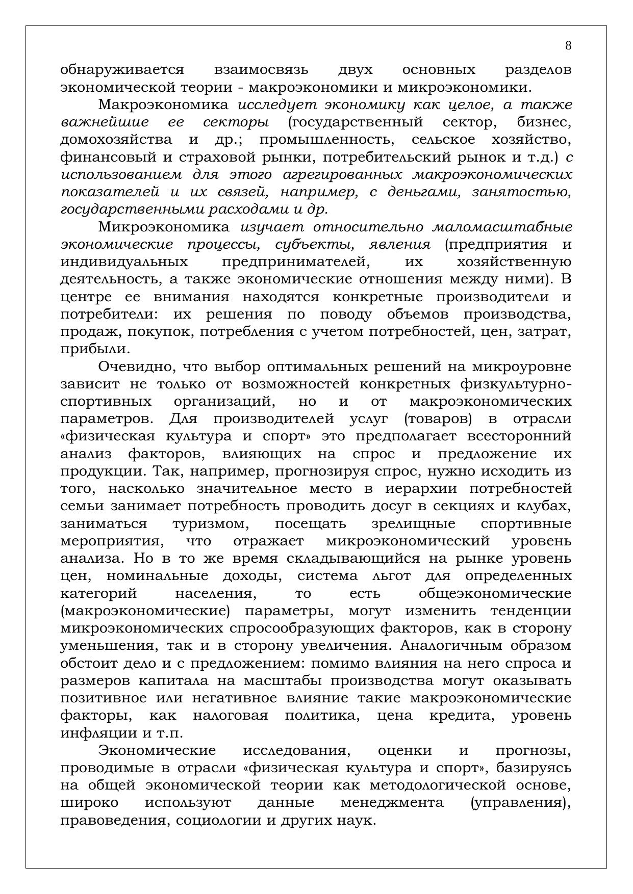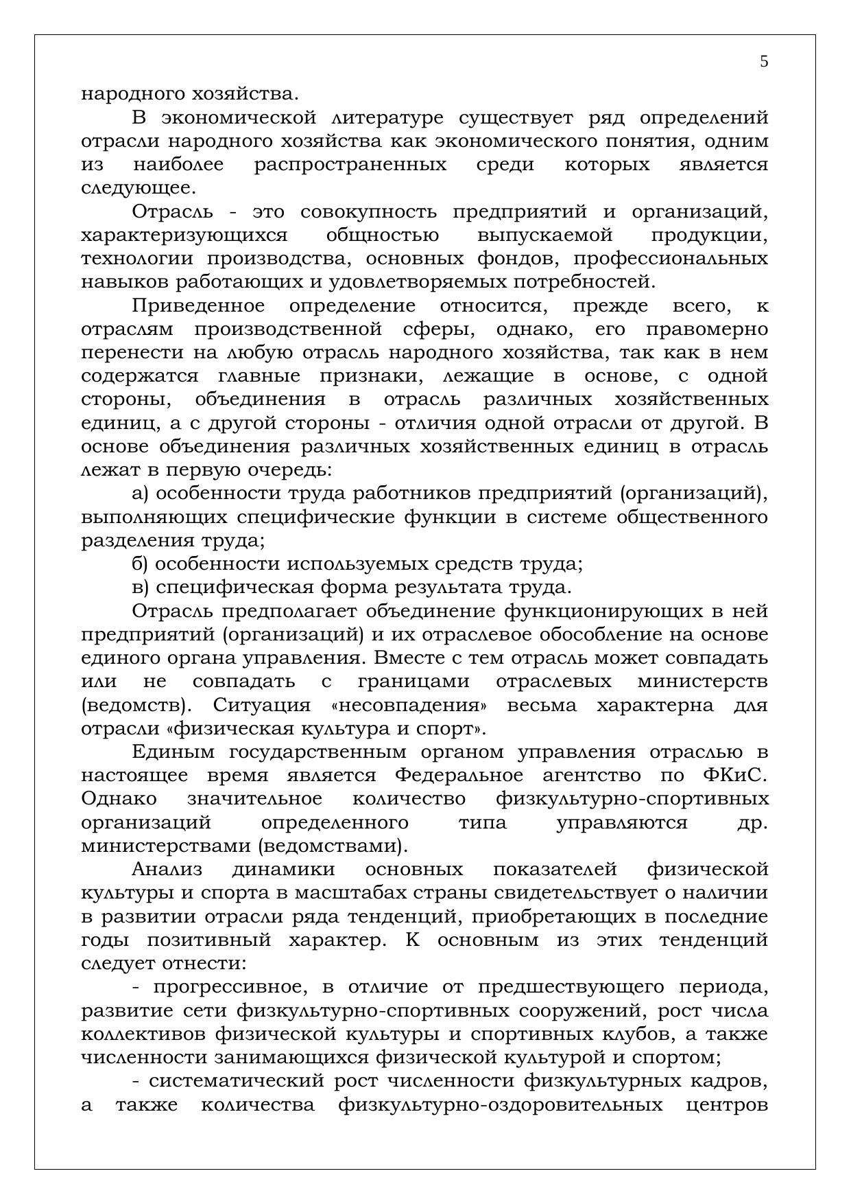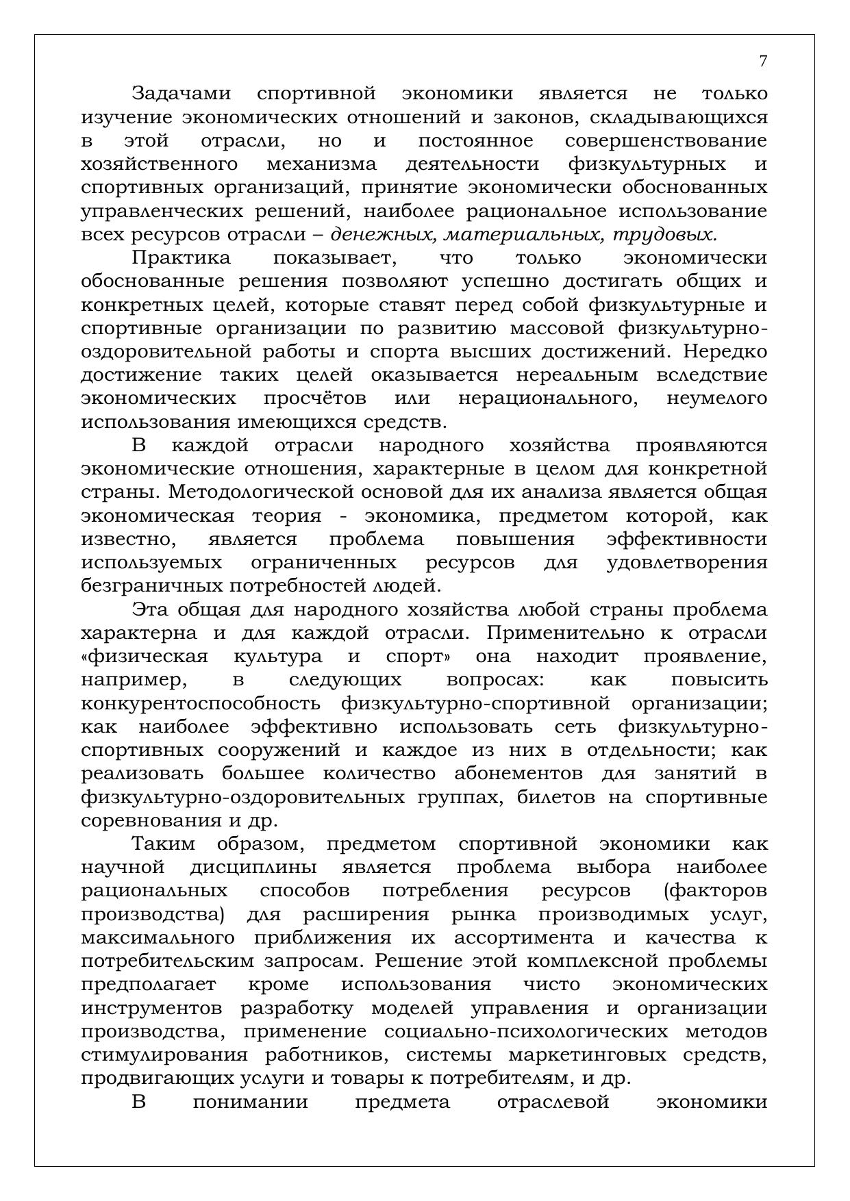 С экономической точки зрения физическую культуру и спорт правомерно рассматривать как вид общественно полезной деятельности по оказанию разнообразных услуг, относящейся к непроизводственной сфере и потому прямо не участвующей в