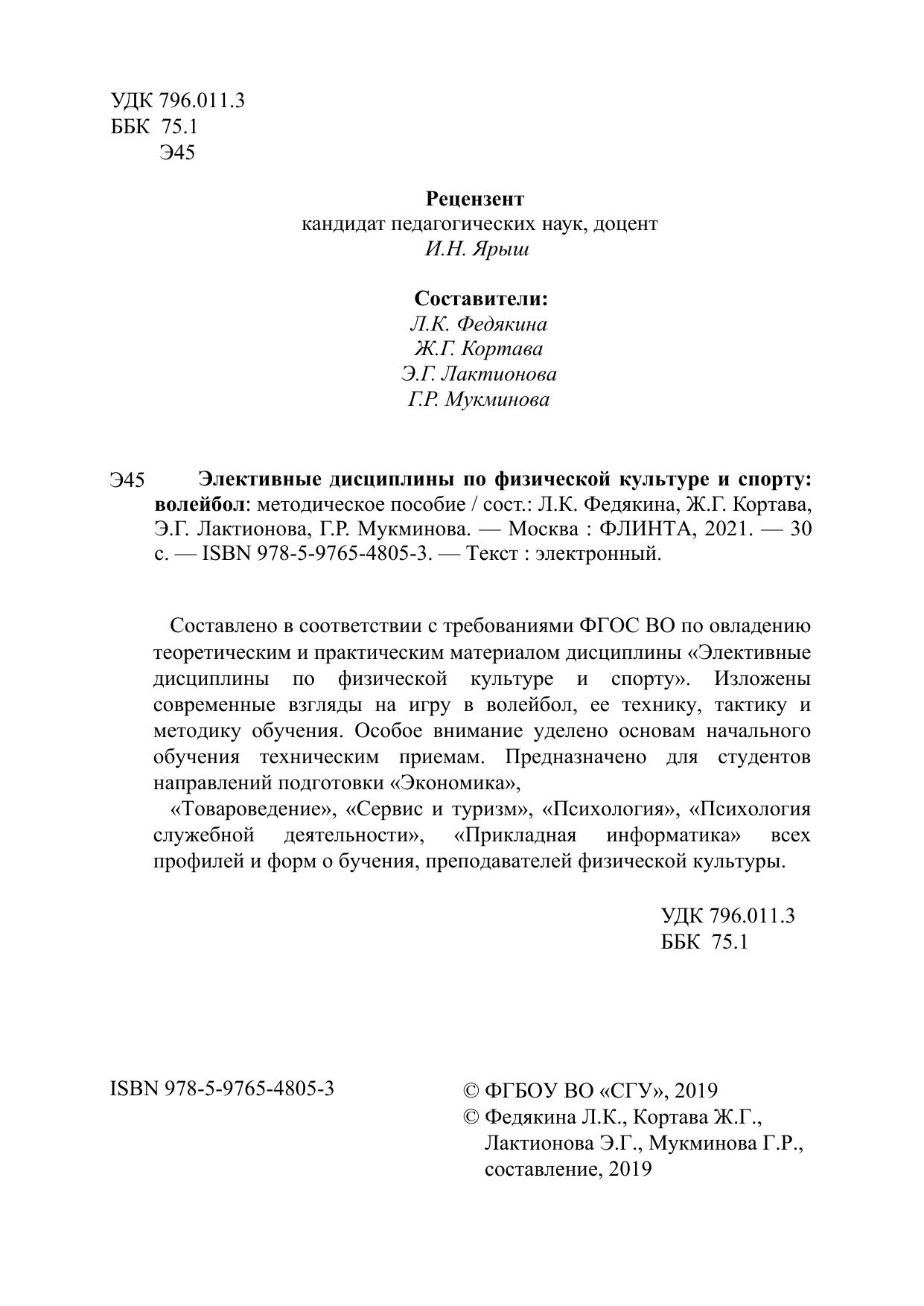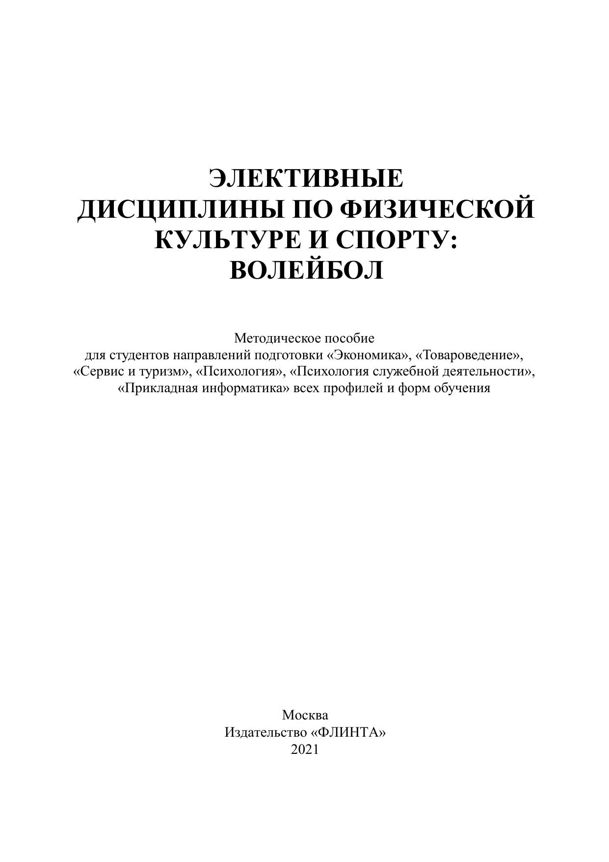 Элективные дисциплины по физической культуре и спорту: волейбол