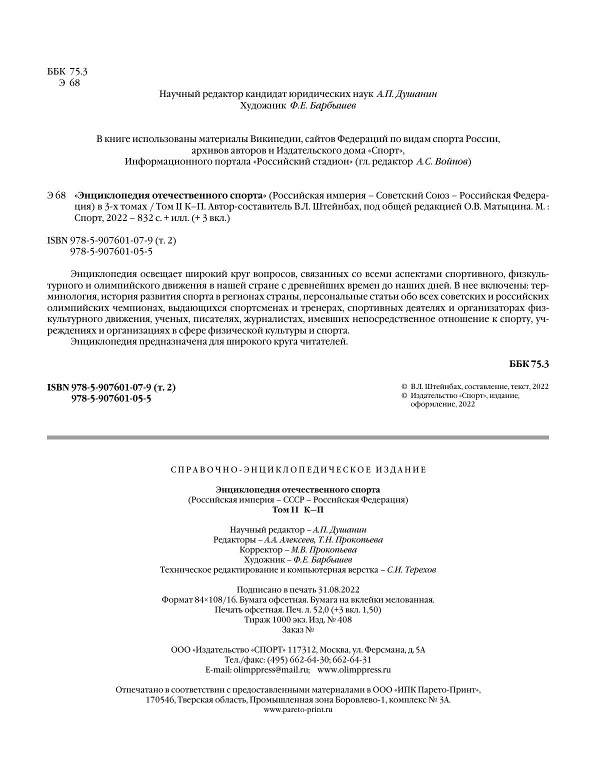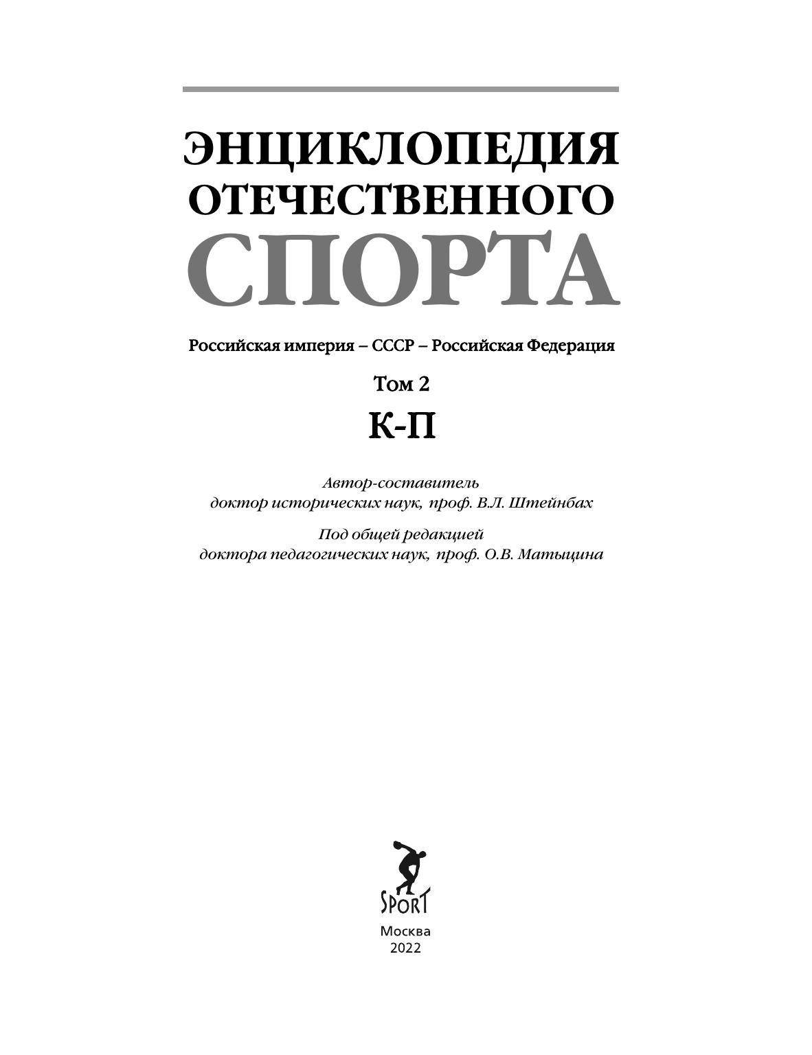 Энциклопедия отечественого спорта в 3-х томах. Том II К–П