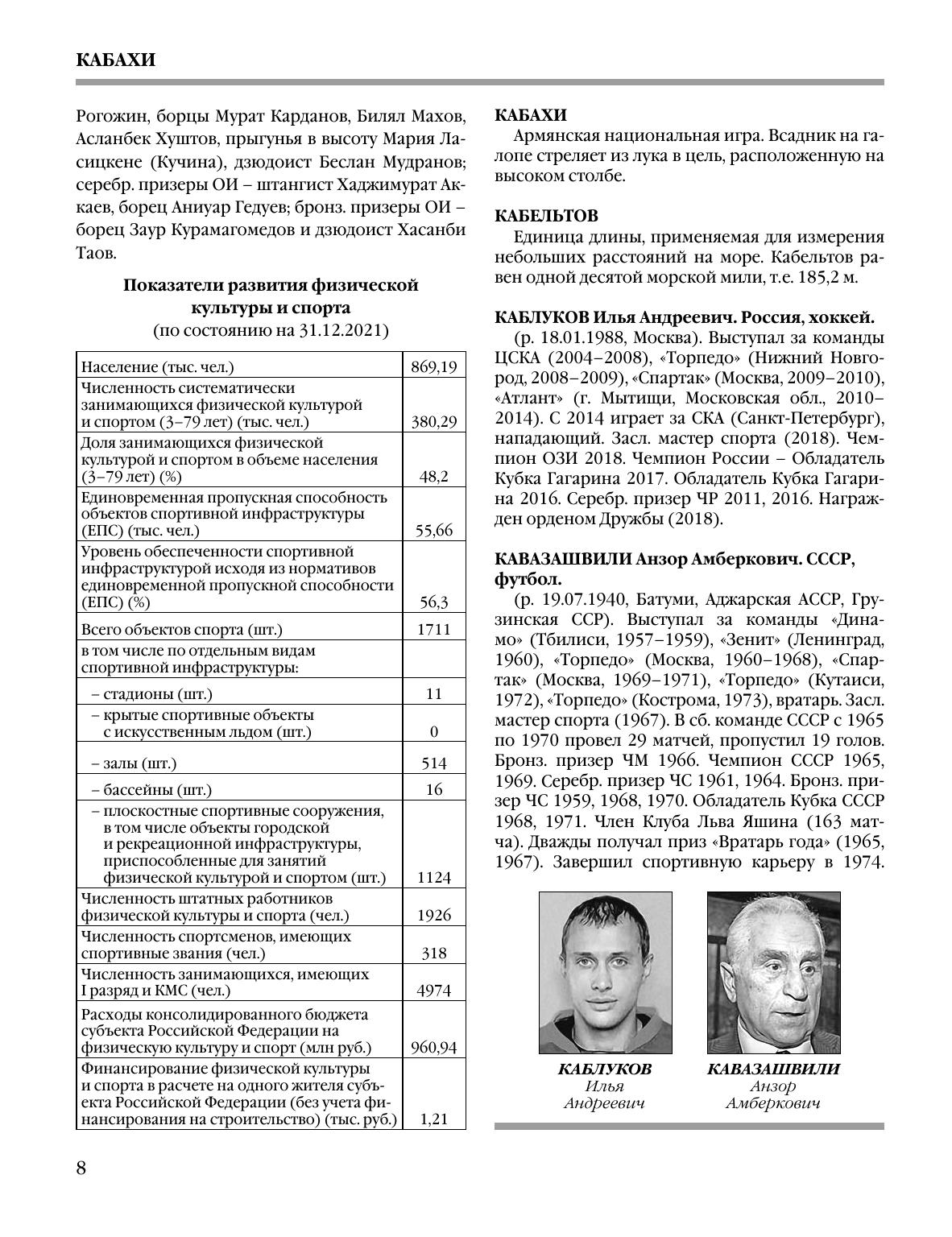 Энциклопедия освещает широкий круг вопросов, связанных со всеми аспектами спортивного, физкультурного и олимпийского движения в нашей стране с древнейших времен до наших дней. В нее включены: терминология, история развития спорта в регионах страны, персональные статьи обо всех советских и российских олимпийских чемпионах, выдающихся спортсменах и тренерах, спортивных деятелях и организаторах физкультурного движения, ученых, писателях, журналистах, имевших непосредственное отношение к спорту, учреждениях и организациях в сфере физической культуры и спорта. Энциклопедия предназначена для широкого круга читателей.