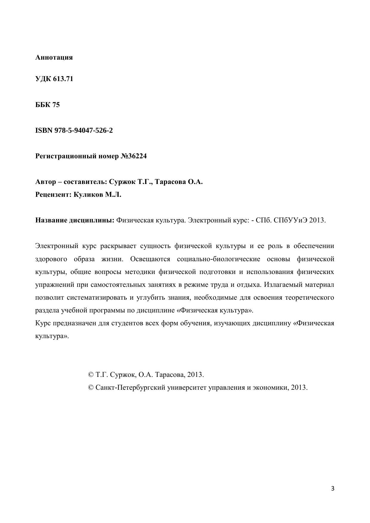 Электронный курс раскрывает сущность физической культуры и ее роль в обеспечении здорового образа жизни. Освещаются социально-биологические основы физической культуры, общие вопросы методики физической подготовки и использования физических упражнений при самостоятельных занятиях в режиме труда и отдыха. Излагаемый материал позволит систематизировать и углубить знания, необходимые для освоения теоретического раздела учебной программы по дисциплине «Физическая культура». Курс предназначен для студентов всех форм обучения, изучающих дисциплину «Физическая культура».