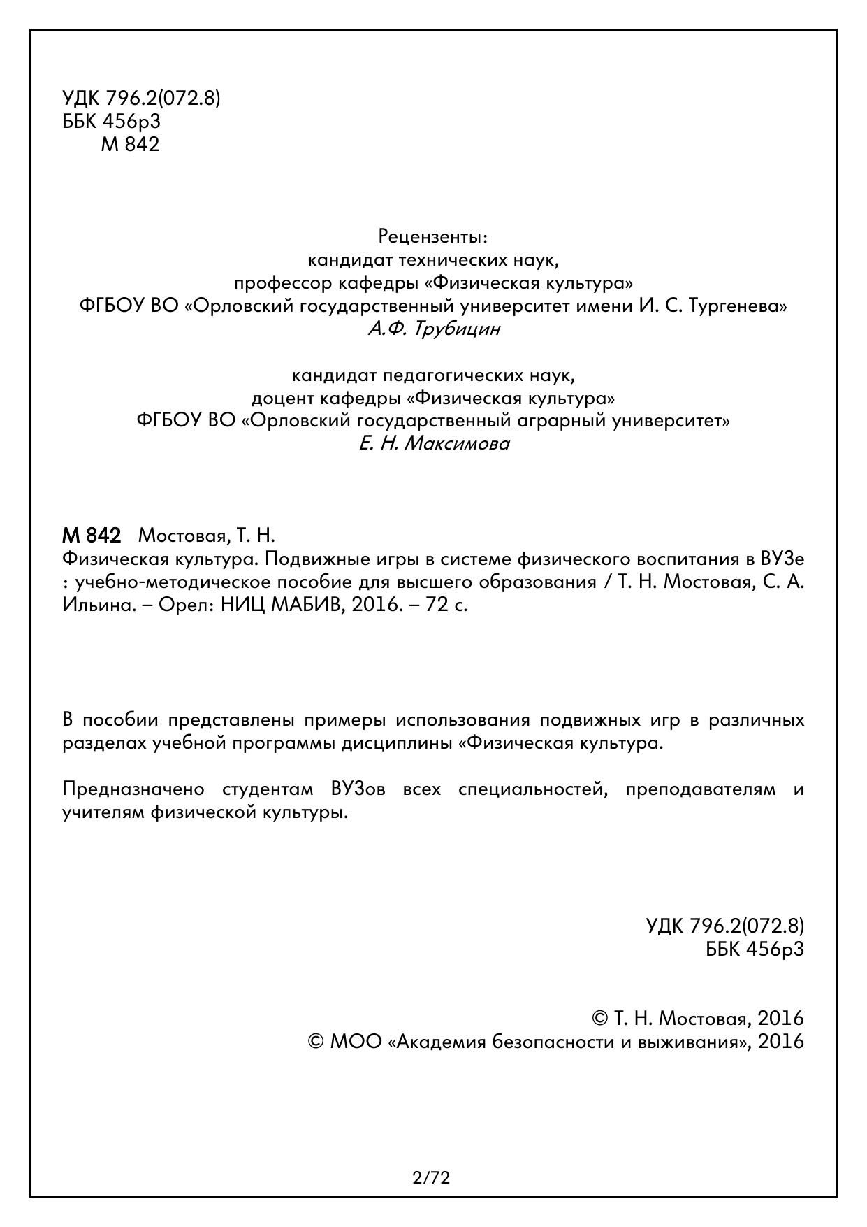 Физическая культура. Подвижные игры в системе физического воспитания в ВУЗе: учебно-методическое пособие для высшего образования