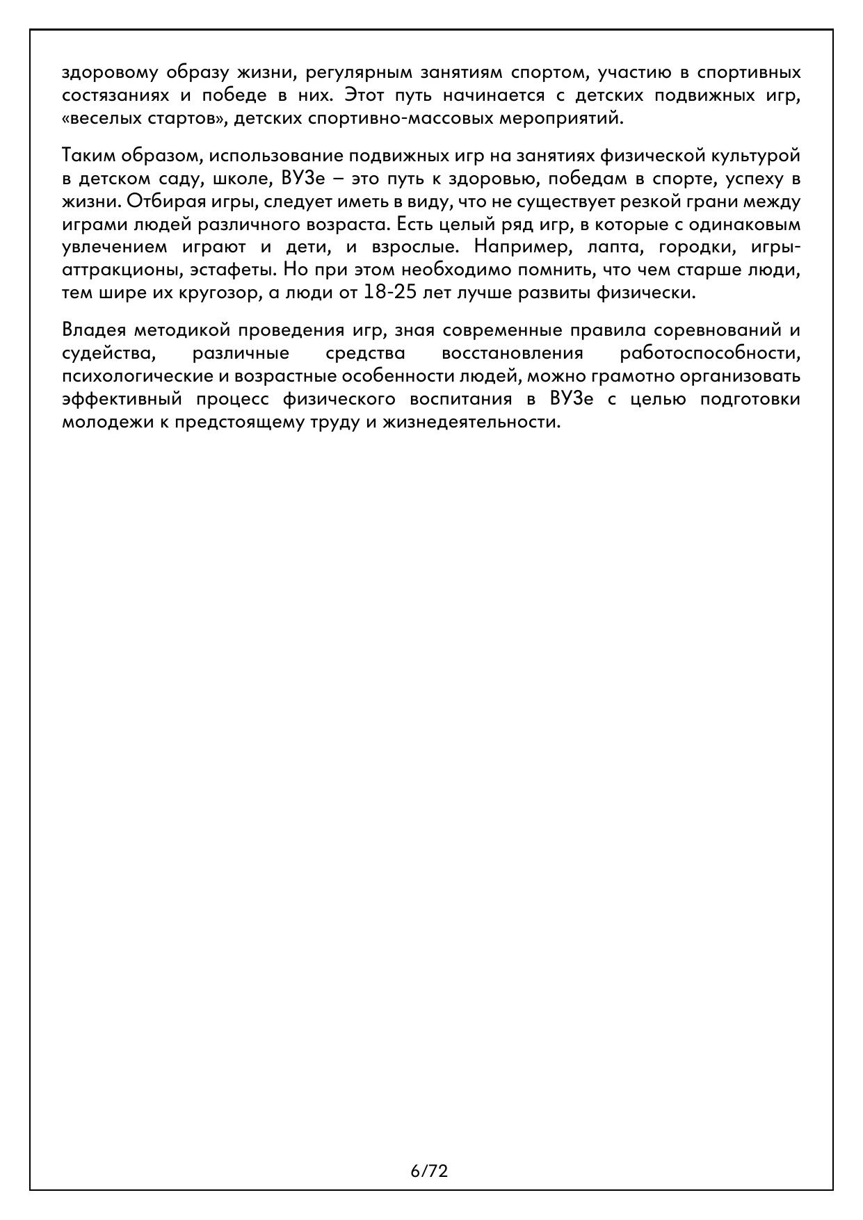 В пособии представлены примеры использования подвижных игр в различных разделах учебной программы дисциплины «Физическая культура.