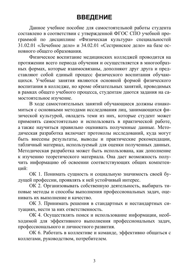 В пособии представлены основные методы оценки и коррекции телосложения, оценка физического развития методом индексов, методы исследования сердечно-сосудистой системы, физической работоспособности, нервной системы и нервно-мышечного аппарата, системы внешнего дыхания, излагаются основные принципы врачебно-педагогических наблюдений и самоконтроля обучающегося. Пособие предназначено для преподавателей дисциплины «Физическая культура» и обучающихся колледжей. Соответствует современным требованиям Федерального государственного образовательного стандарта среднего профессионального образования и профессиональным квалификационным требованиям.