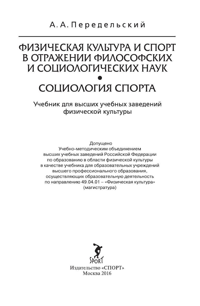 Физическая культура и спорт в отражении философских и социологических наук. Социология спорта: Учебник