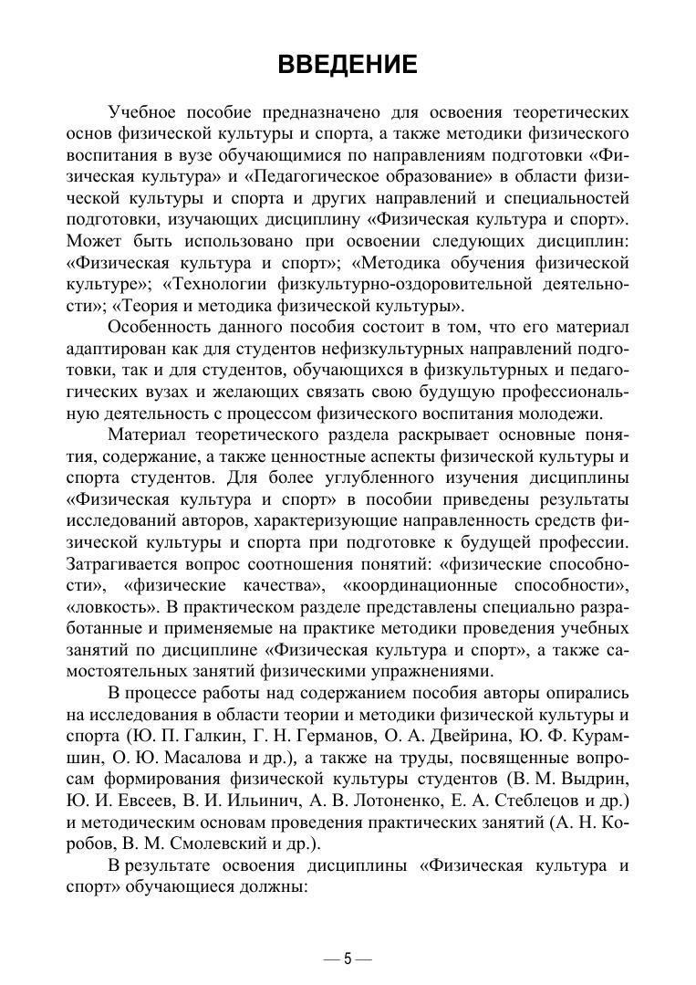 В учебном пособии раскрыты теоретические основы физической культуры студентов высших учебных заведений, а также вопросы студенческого спорта. Систематизированы и обобщены данные характеризующие процесс общей физической подготовки обучающихся, и обеспечивающие функциональную базу для профессионально-прикладной и спортивной подготовки. Особое внимание уделено вопросам методики преподавания дисциплин физической культуры и спорта.