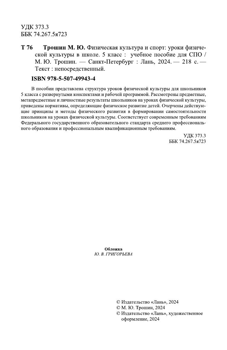 В пособии представлена структура уроков физической культуры для школьников 5 класса с развернутыми конспектами и рабочей программой. Рассмотрены предметные, метапредметные и личностные результаты младших школьников на уроках физической культуры, приведены нормативы, определяющие физическое развитие детей. Очерчены действующие принципы и методы физического развития в формировании самостоятельности школьников на уроках физической культуры. Соответствует современным требованиям Федерального государственного образовательного стандарта среднего профессионального образования и профессиональным квалификационным требованиям.