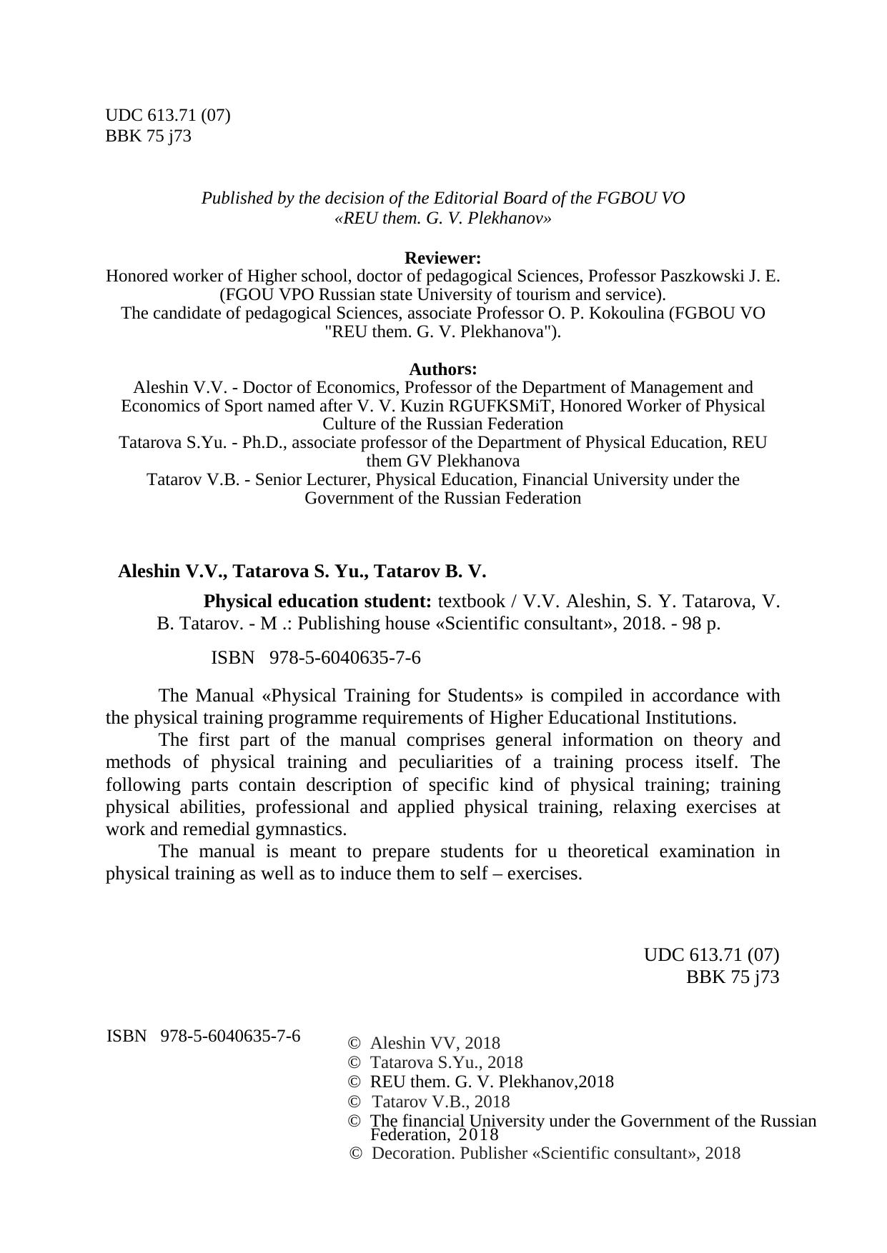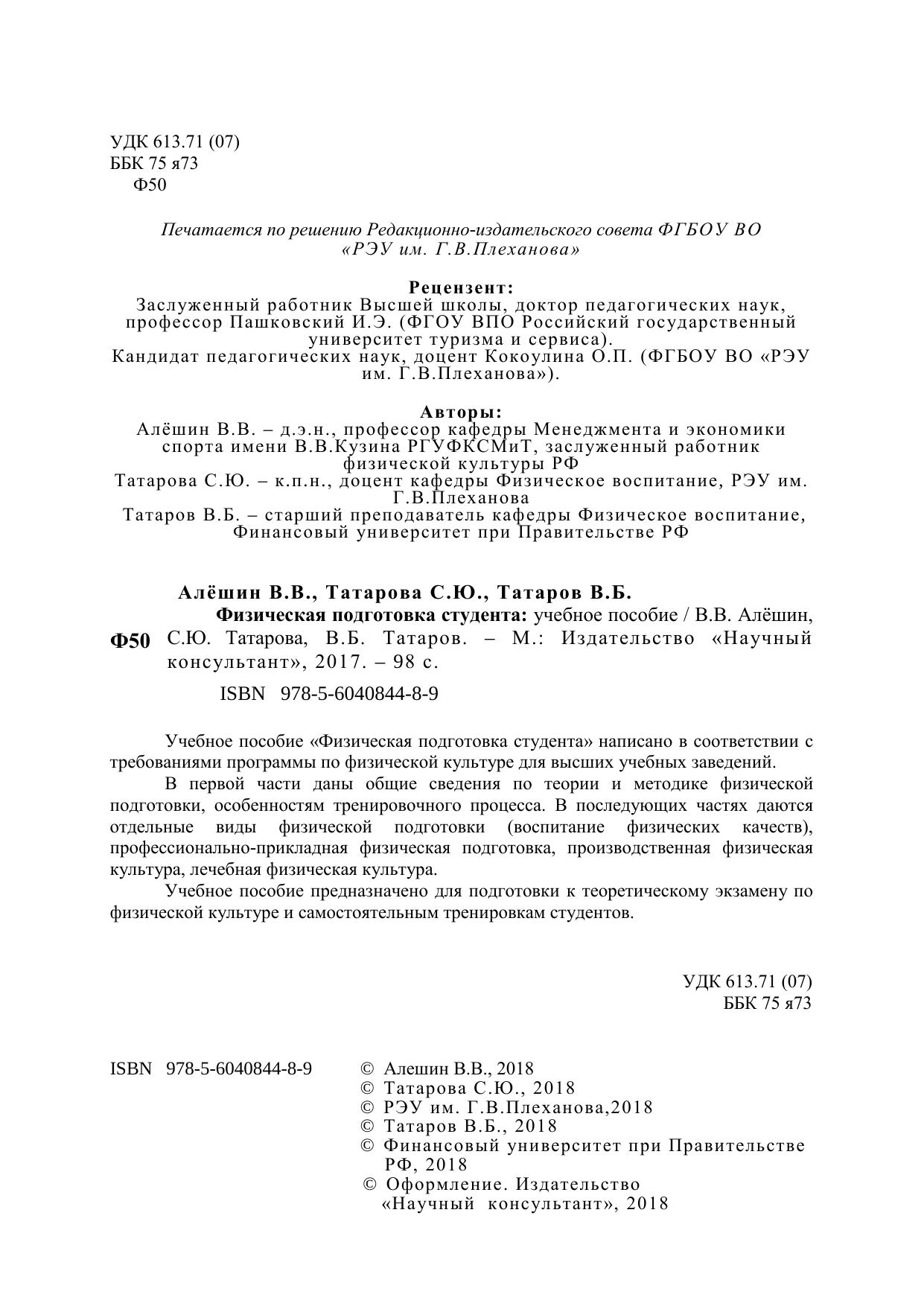 Авторы: Алешин В.В., Татарова С.Ю., Та таров В.Б.