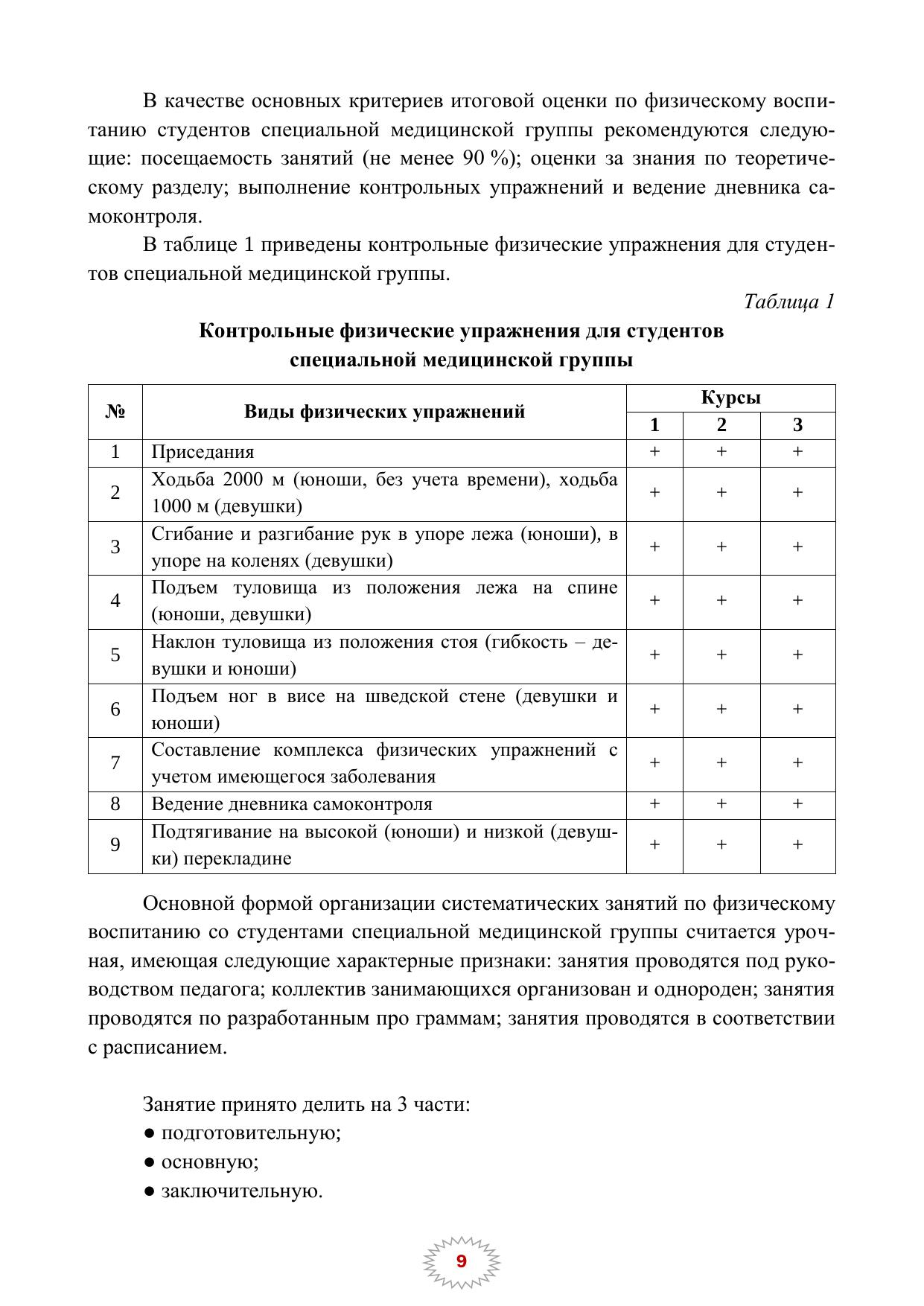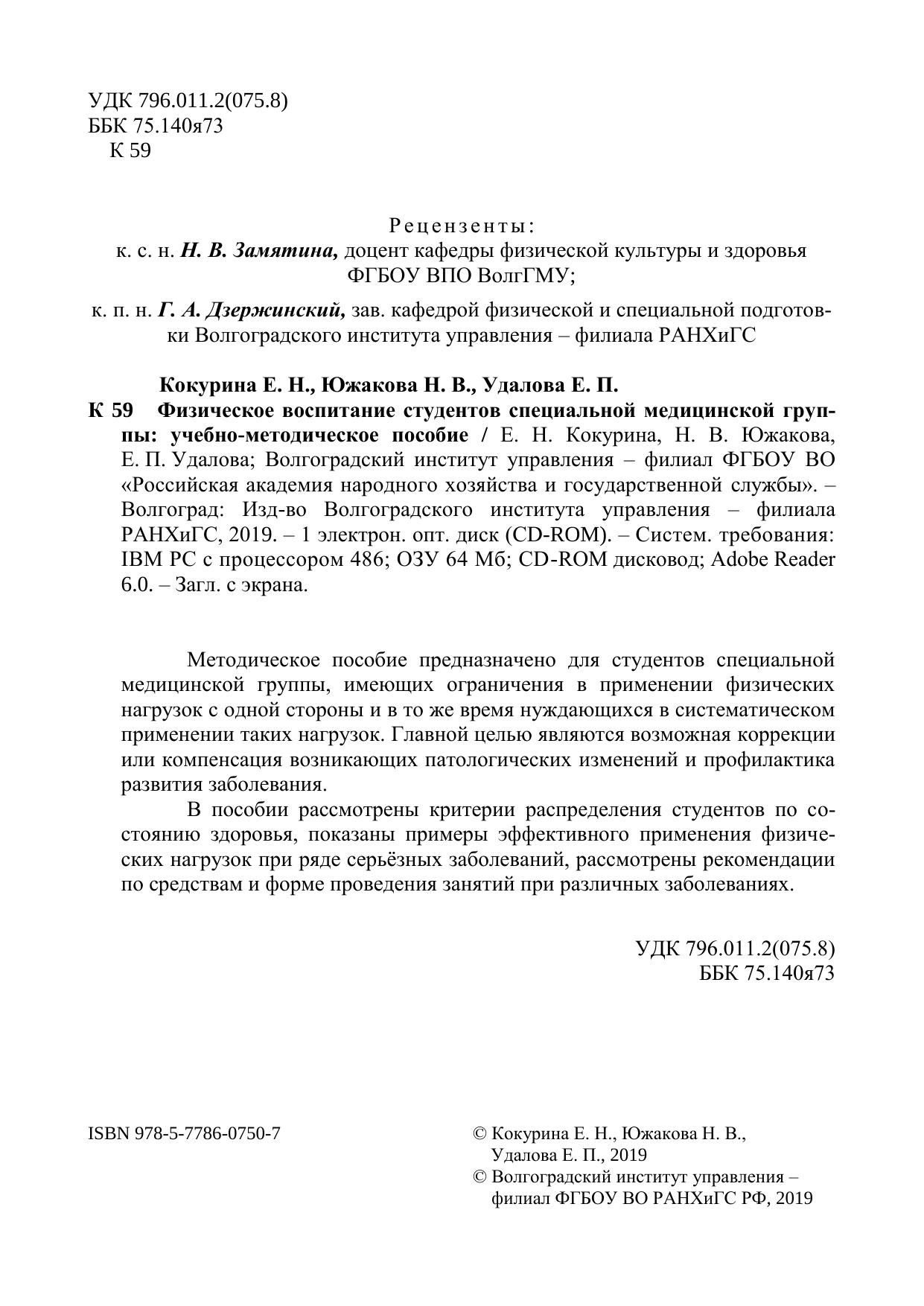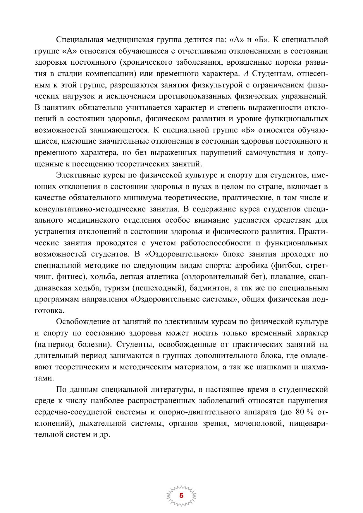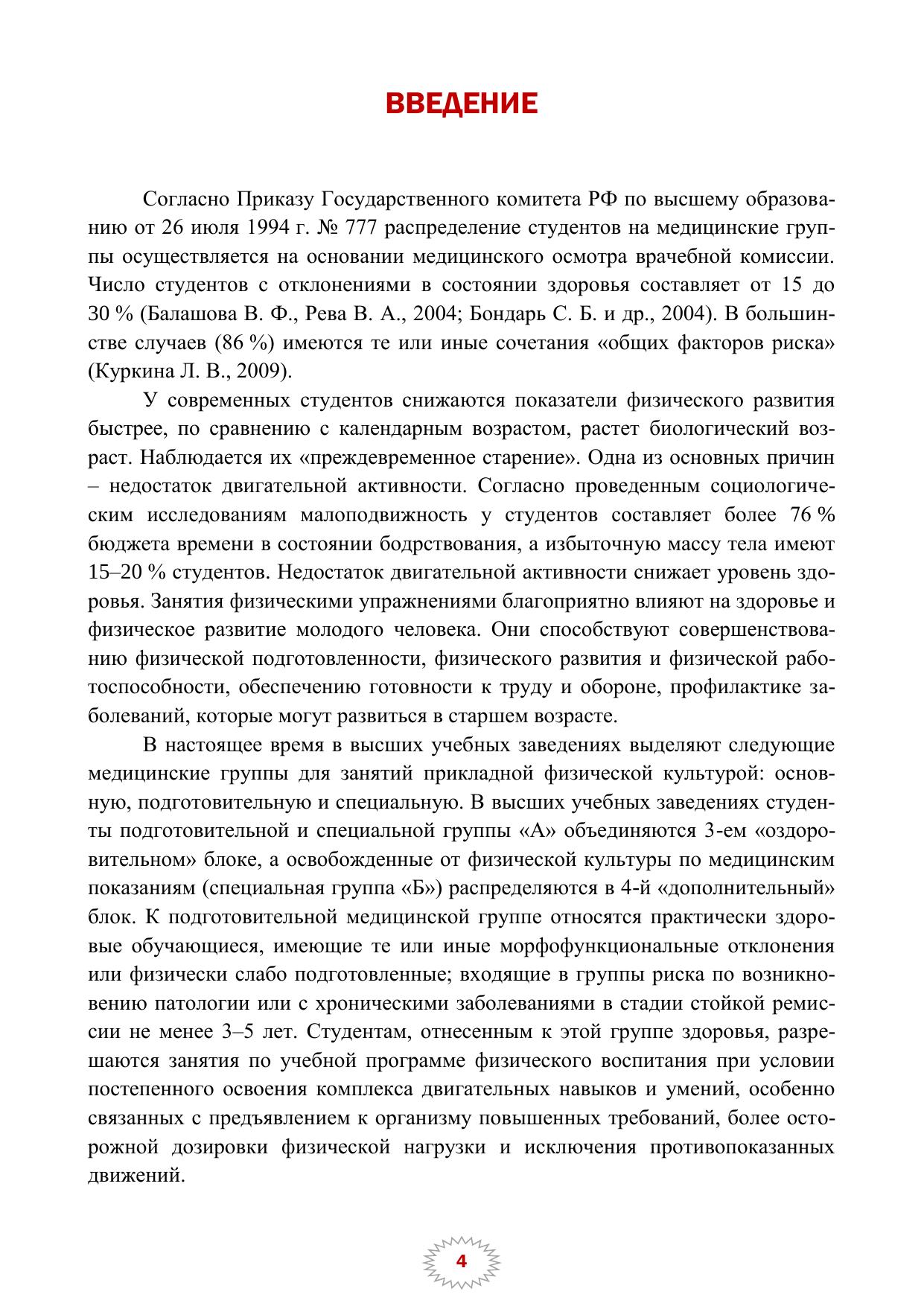 Методическое пособие предназначено для студентов специальной медицинской группы, имеющих ограничения в применении физических нагрузок с одной стороны и в то же время нуждающихся в систематическом применении таких нагрузок. Главной целью являются возможная коррекции или компенсация возникающих патологических изменений и профилактика развития заболевания. В пособии рассмотрены критерии распределения студентов по со-стоянию здоровья, показаны примеры эффективного применения физиче-ских нагрузок при ряде серьѐзных заболеваний, рассмотрены рекомендации по средствам и форме проведения занятий при различных заболеваниях.