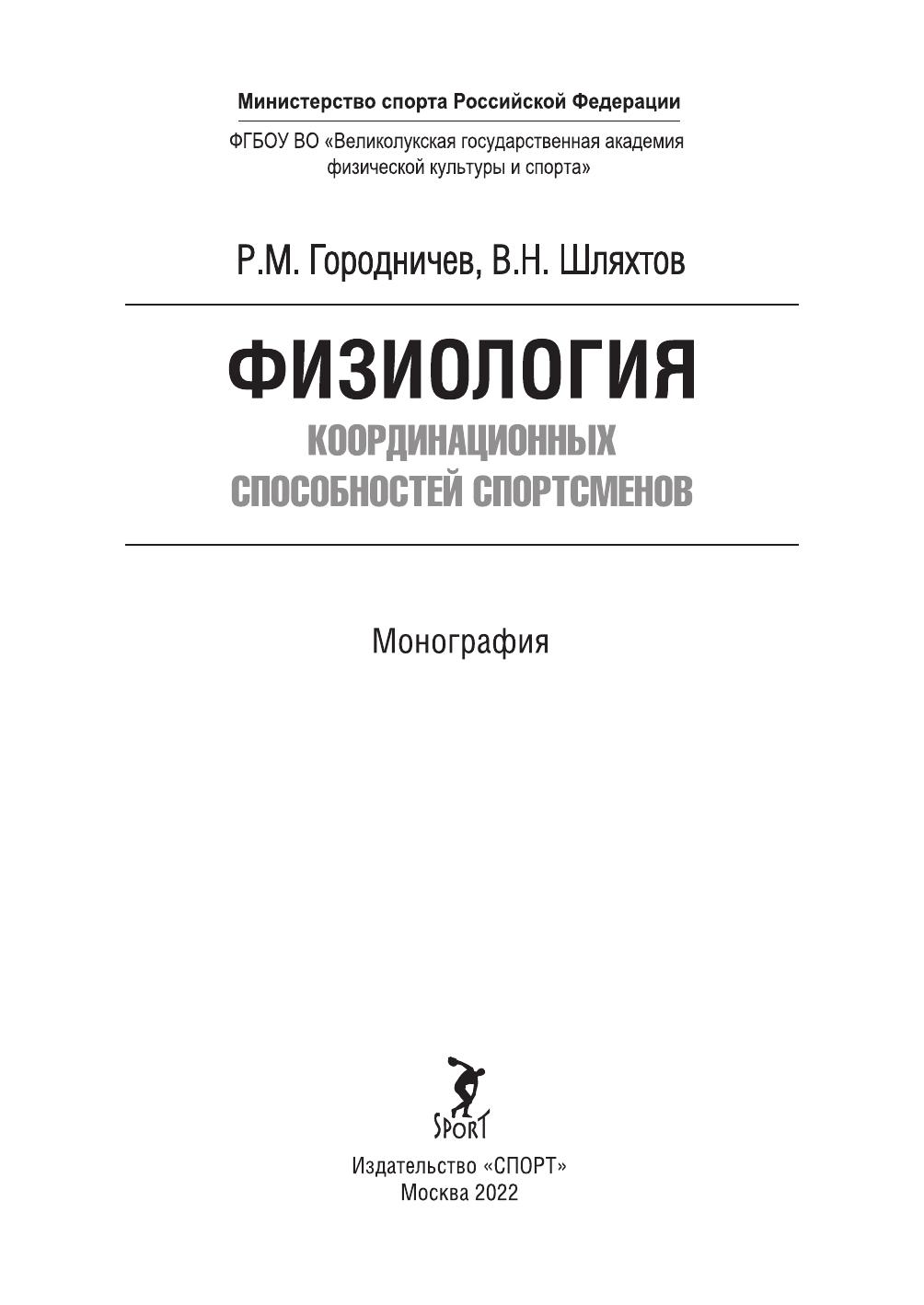 Физиология координационных способностей спортсменов Городничев Р. М., Шляхтов В. Н.