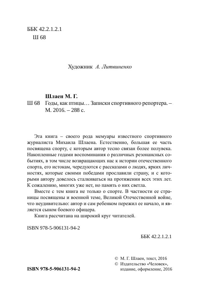 Эта книга – своего рода мемуары известного спортивного журналиста Михаила Шлаена. Естественно, большая ее часть посвящена спорту, с которым автор тесно связан более полувека. Накопленные годами воспоминания о различных резонансных событиях, в том числе возвращающих нас к истории отечественного спорта, его истокам, чередуются с рассказами о людях, ярких личностях, которые своими победами прославили страну, и с которыми автору довелось сталкиваться на протяжении всех этих лет. К сожалению, многих уже нет, но память о них светла. Вместе с тем книга не только о спорте. В частности ее страницы посвящены и военной теме, Великой Отечественной войне, что неудивительно: автор и сам ребенком пережил ее начало, и является сыном боевого офицера.Книга рассчитана на широкий круг читателей.