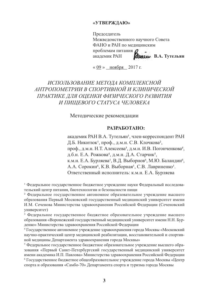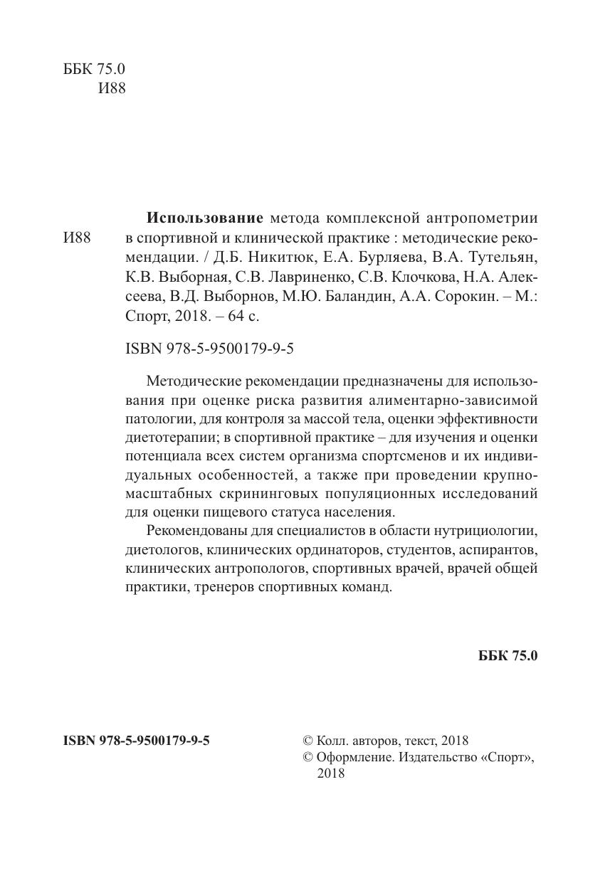 Методические рекомендации предназначены для использования при оценке риска развития алиментарно-зависимой патологии, для контроля за массой тела, оценки эффективности диетотерапии; в спортивной практике – для изучения и оценки потенциала всех систем организма спортсменов и их индивидуальных особенностей, а также при проведении крупномасштабных скрининговых популяционных исследований для оценки пищевого статуса населения.