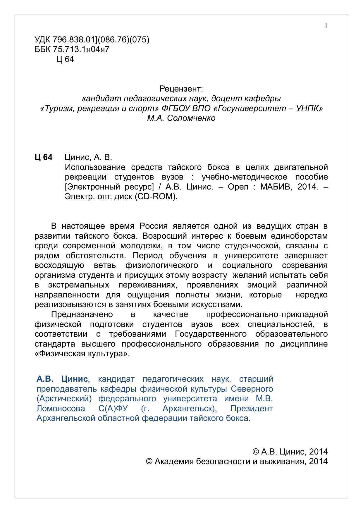 Использование средств тайского бокса в целях двигательной рекреации студентов вузов: учебно-методическое пособие
