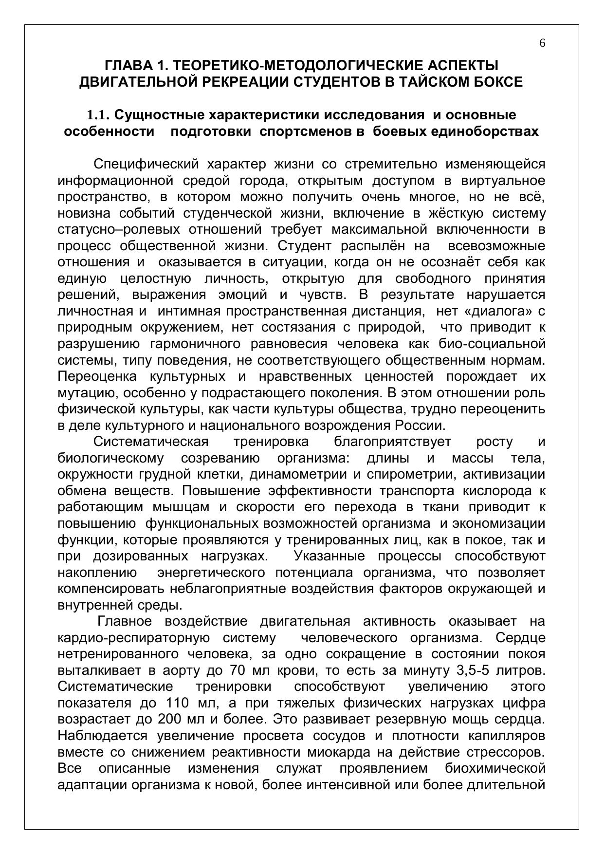 В настоящее время Россия является одной из ведущих стран в развитии тайского бокса. Возросший интерес к боевым единоборстам среди современной молодежи, в том числе студенческой, связаны с рядом обстоятельств. Период обучения в университете завершает восходящую ветвь физиологического и социального созревания организма студента и присущих этому возрасту желаний испытать себя в экстремальных переживаниях, проявлениях эмоций различной направленности для ощущения полноты жизни, которые нередко реализовываются в занятиях боевыми искусствами.