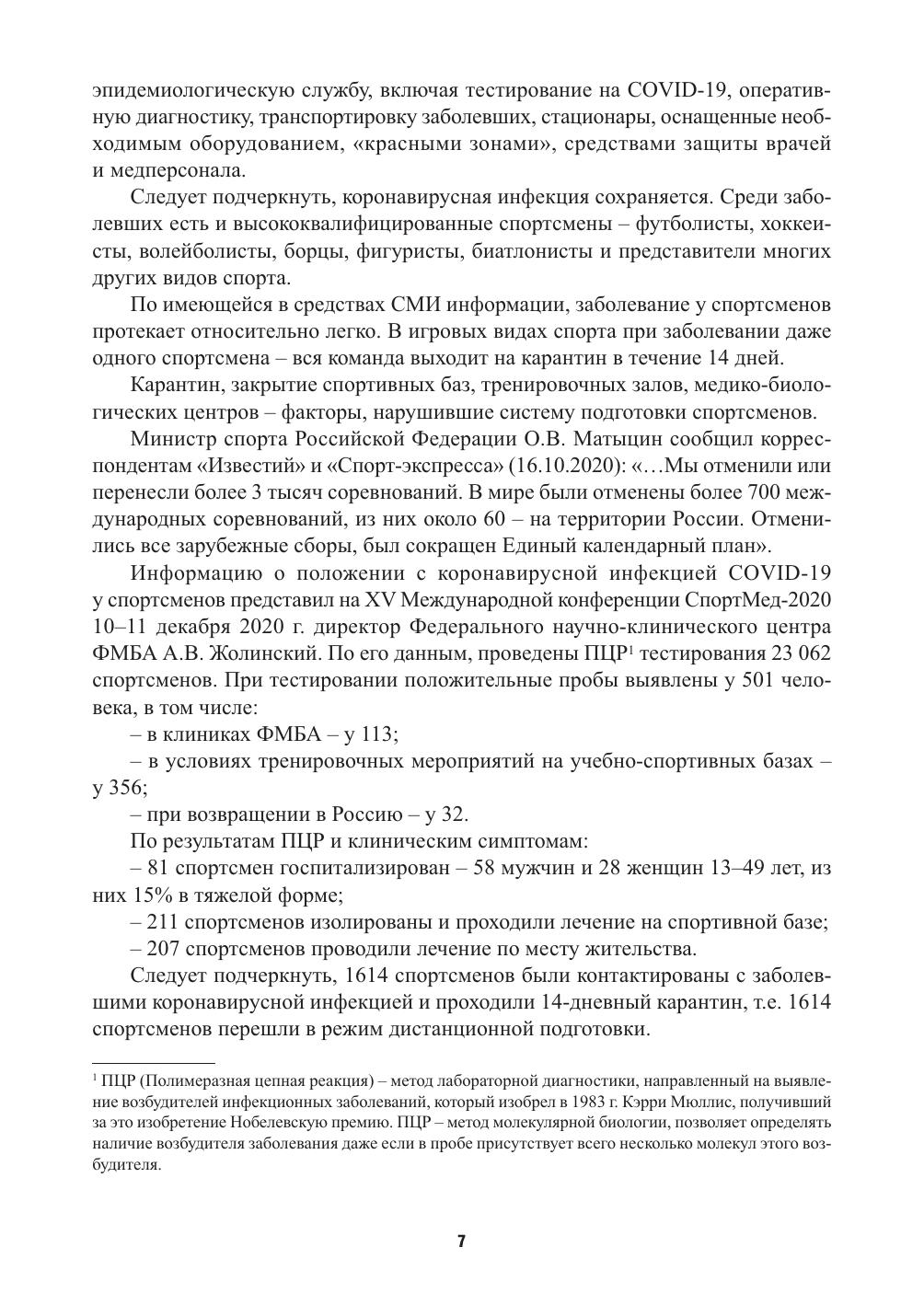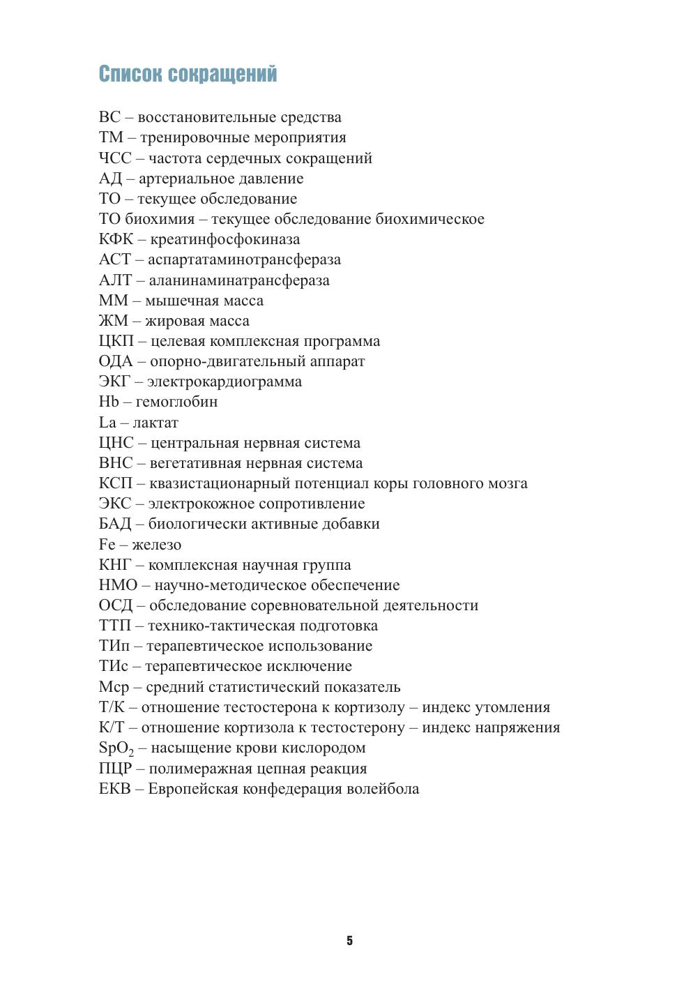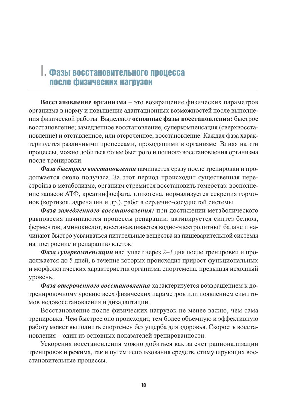 В книге представлены программа комплексного восстановления в спорте в условиях тренировочных мероприятий, соревнований и в процессе дистанционной подготовки; выявлены взаимосвязи адаптации спортсменов к тренировочным нагрузкам с направленностью средств восстановления; предложен имеющийся банк мобильных физиотерапевтических приборов новейшей технологии и портативных приборов функциональной диагностики, обеспечивающих работу в условиях тренировки, соревнований, дистанционной подготовки, а также при переездах и перелетах, учитывая их мобильность. Приводится обоснование антропо-морфологических и функционально-адаптационных особенностей женского организма и взаимосвязь с формированием педагогической программы восстановления. Проведена оценка эффективности разработанной комплексной системы восстановления, включающей педагогические, психофизиологические и медико-биологические средства в оптимизации процессов восстановления и успешной реализации спортивных результатов в практике подготовки и выступления в соревнованиях на двух чемпионатах Европы женской сборной команды России по волейболу. Предложены программы первичной и вторичной профилактики в спорте и профилактики коронавирусной инфекции. Книга предназначена врачам, тренерам, специалистам спорта и профессиональным спортсменам.