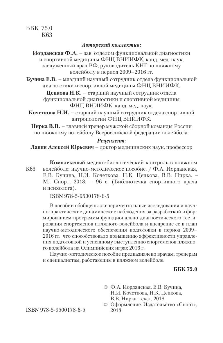 Научно-методическое пособие предназначено врачам, тренерам и специалистам, работающим в пляжном волейболе.