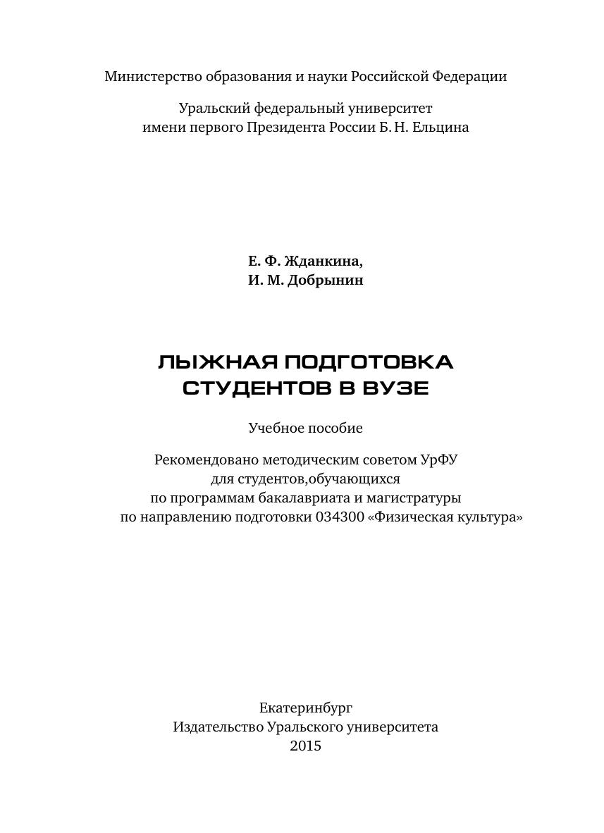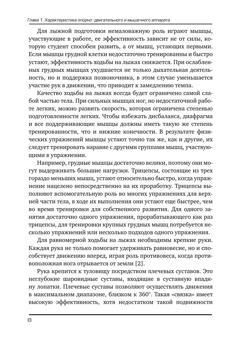 В работе рассматривается техника ходьбы на лыжах, объясняется значение укрепления организма студента с помощью общеразвивающих и специальных упражнений: без предметов, с предметами и на тренажерах, подобранных для повышения физической подготовленности студентов всех специальностей. Подробно рассматриваются функции мышечной системы, исключение травм посредством устранения анатомического дисбаланса, который часто усугубляется действием на костно-мышечную систему. В учебном пособии даны практические рекомендации, которые помогут преподавателю вуза, проводящему занятия по обучению и совершенствованию техники лыжных ходов, а также студенту-лыжнику использовать все факторы, способствующие укреплению здоровья, заложить прочную основу для дальнейших занятий лыжным спортом и повышения спортивных результатов. Учебное пособие рассчитано на студентов, обучающихся по программам бакалавриата и магистратуры, а также на преподавателей физической культуры.