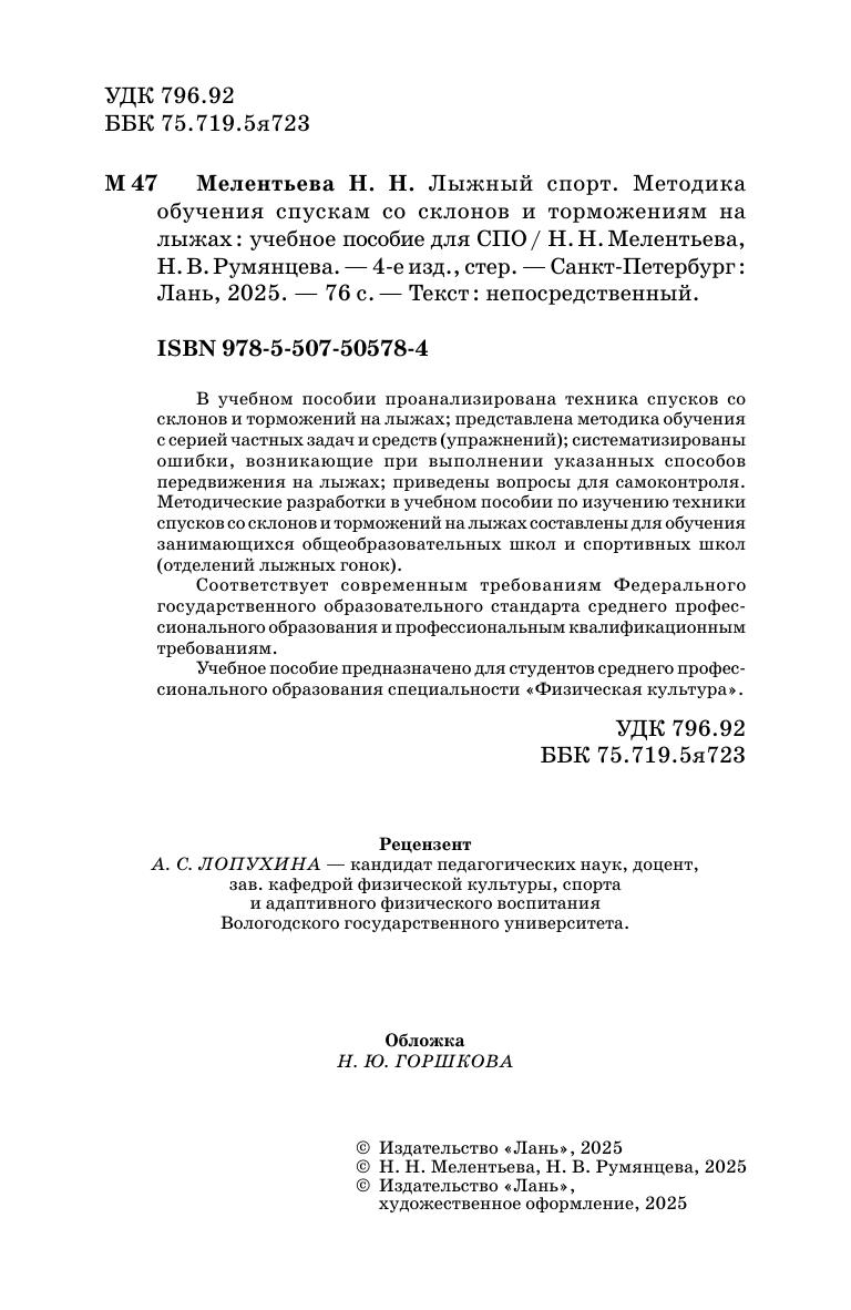 В учебном пособии проанализирована техника спусков со склонов и торможений на лыжах, представлена методика обучения с серией частных задач и средств (упражнений), систематизированы ошибки, возникающие при выполнении указанных способов передвижения на лыжах, приведены вопросы для самоконтроля. Методические разработки в учебном пособии по изучению техники спусков со склонов и торможений на лыжах составлены для обучения занимающихся общеобразовательных школ и спортивных школ (отделений лыжных гонок). Соответствует современным требованиям Федерального государственного образовательного стандарта среднего профессионального образования и профессиональным квалификационным требованиям. Учебное пособие предназначено для студентов среднего профессионального образования специальности «Физическая культура».
