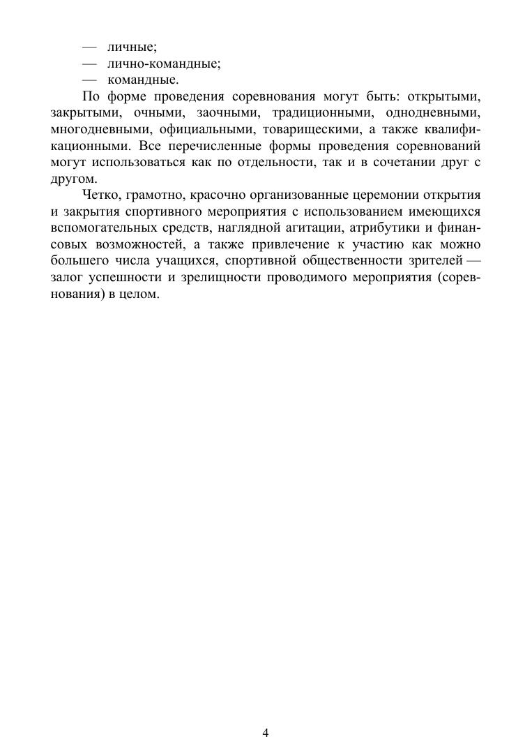 В учебном пособии рассматриваются вопросы организации и проведения спортивно-массовых мероприятий и соревнований разного уровня. Пособие предназначено для педагогов-организаторов, тренеров, учителей физической культуры, методистов, студентов средних учебных заведений физической культуры и спорта, организаторов физкультурно-оздоровительной и спортивно-массовой работы. Соответствует современным требованиям Федерального государственного образовательного стандарта среднего профессионального образования и профессиональным квалификационным требованиям.