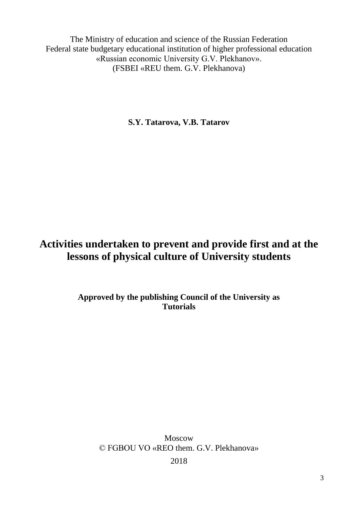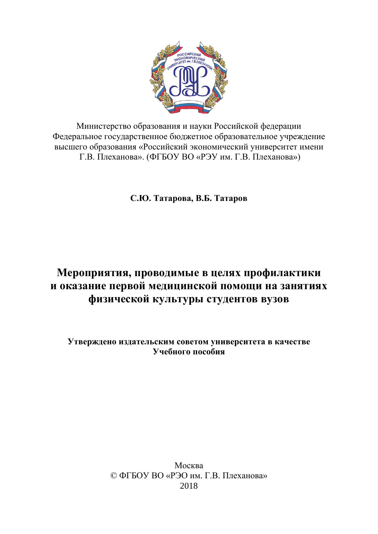 Мероприятия, проводимые в целях профилактики и оказание первой медицинской помощи на занятиях физической культуры студентов вузов