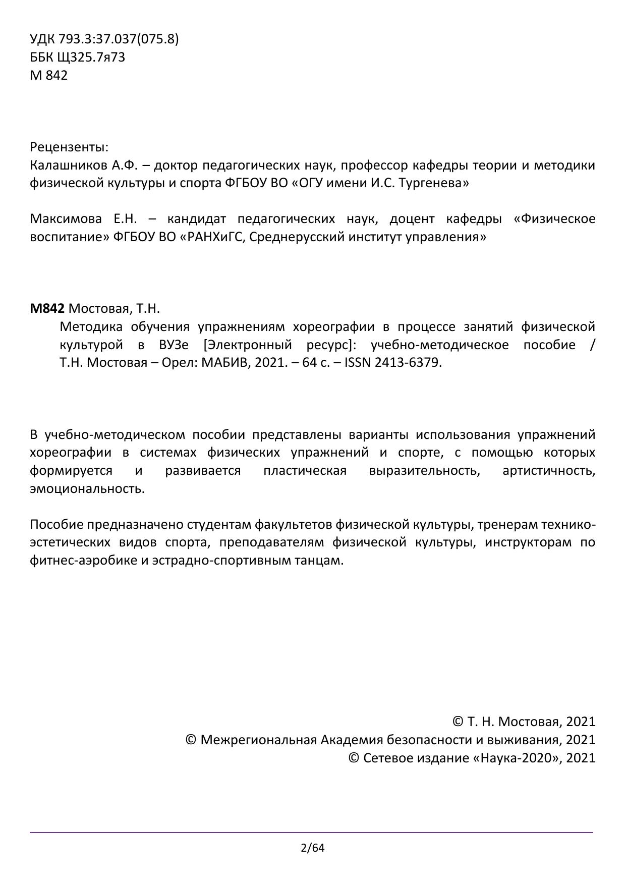 Методика обучения упражнениям хореографии в процессе занятий физической культурой в ВУЗе