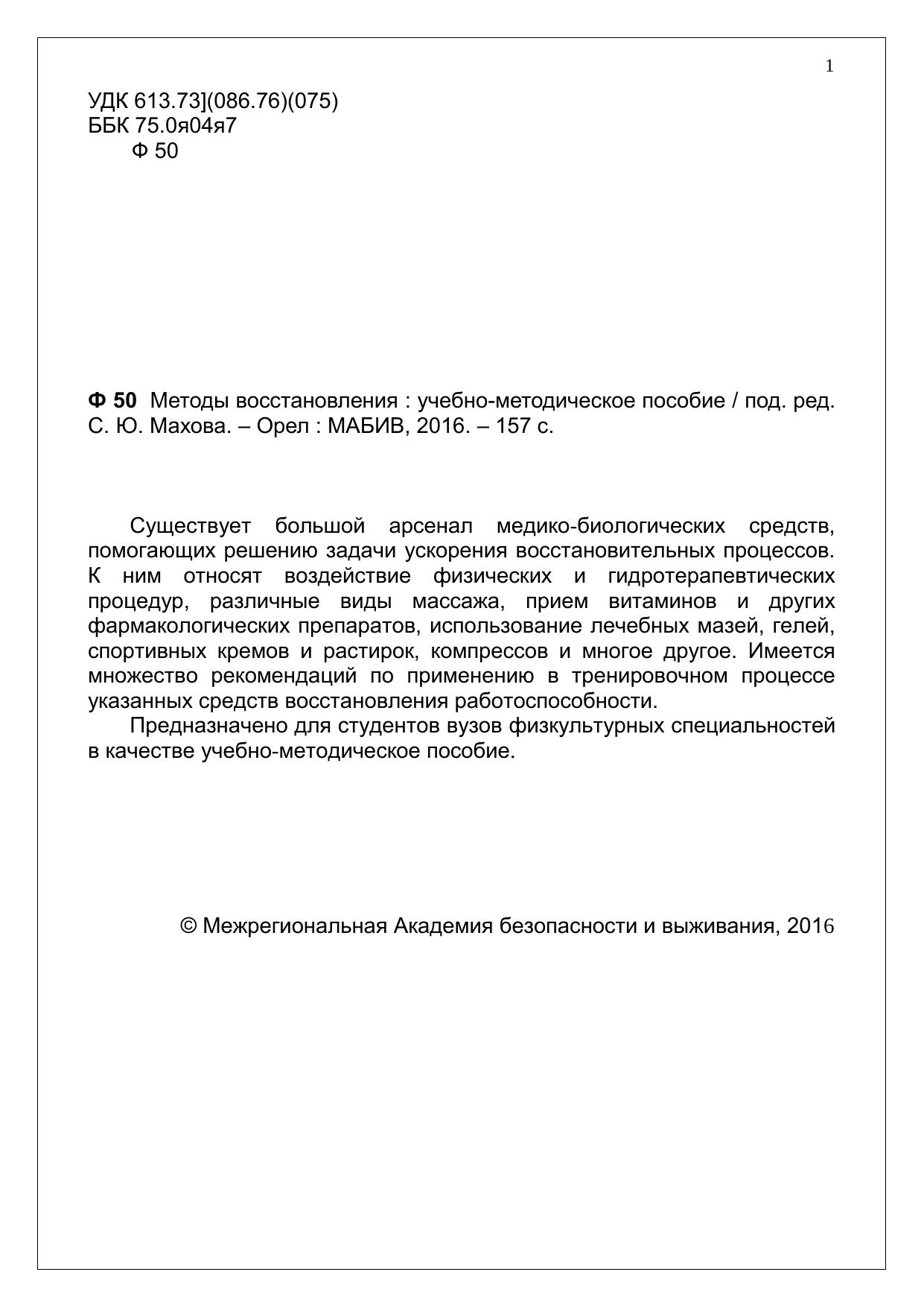 Предназначено для студентов вузов физкультурных специальностей в качестве учебно-методическое пособие.