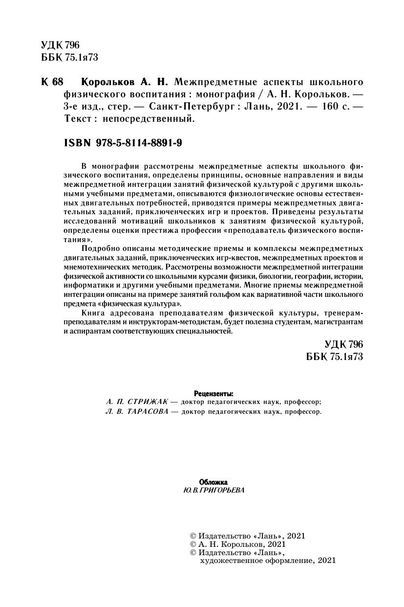 В монографии рассмотрены межпредметные аспекты школьного физического воспитания, определены принципы, основные направления и виды межпредметной интеграции занятий физической культурой с другими школьными учебными предметами, описываются физиологические основы естественных двигательных потребностей, приводятся примеры межпредметных двигательных заданий, приключенческих игр и проектов. Приведены результаты исследований мотиваций школьников к занятиям физической культурой, определены оценки престижа профессии преподаватель физического воспитания.