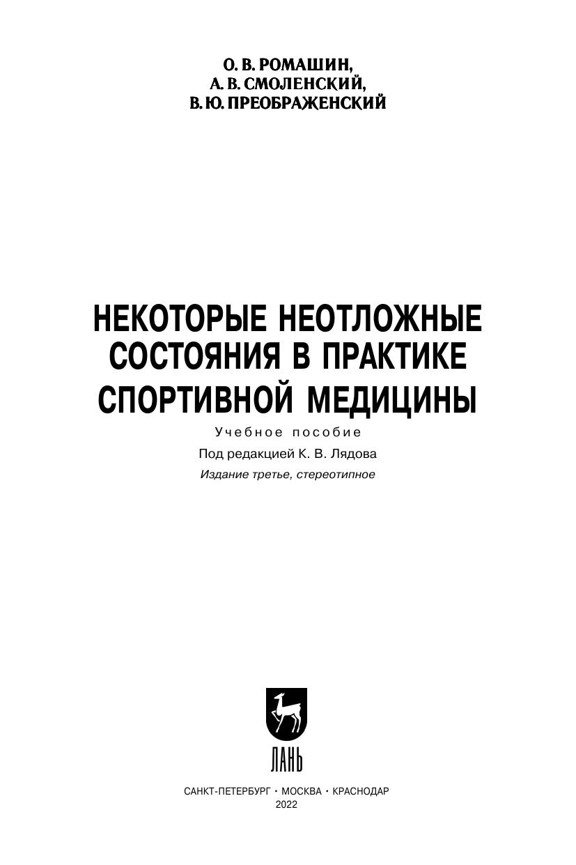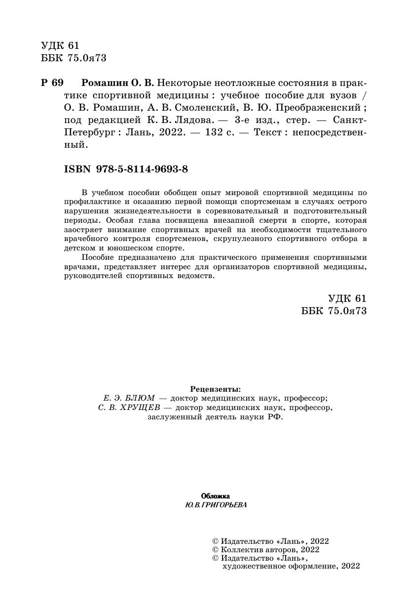 Пособие предназначено для практического применения спортивными врачами, представляют интерес для организаторов спортивной медицины, руководителей спортивных ведомств.