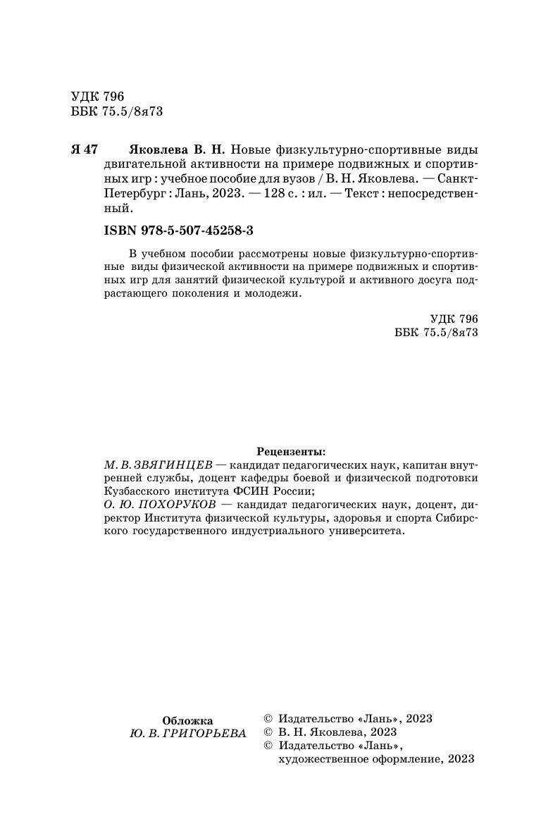 В учебном пособии рассмотрены новые физкультурно-спортивные виды физической активности на примере подвижных и спортивных игр для занятий физической культурой и активного досуга подрастающего поколения и молодежи.